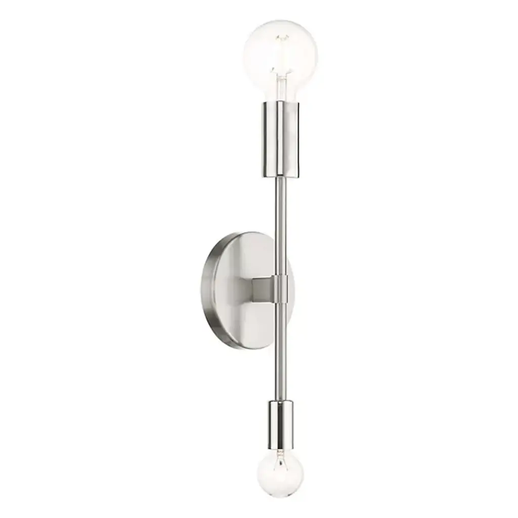 The Don Wall Sconce from Alder & Ore expands its surroundings with a stylish modern character. Made from steel, it starts with a sleek disc wall plate, extending a short rectangular bar out to a slender stem that terminates in a small socket below and a larger socket above, spilling out a compound wash of bright light around the fixture. Each lamp is damp-listed and ADA compliant, giving it a go-anywhere character that works equally well when mounted to walls or on either side of a vanity mirror.