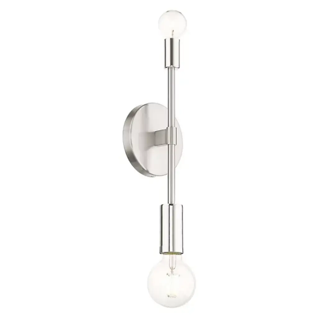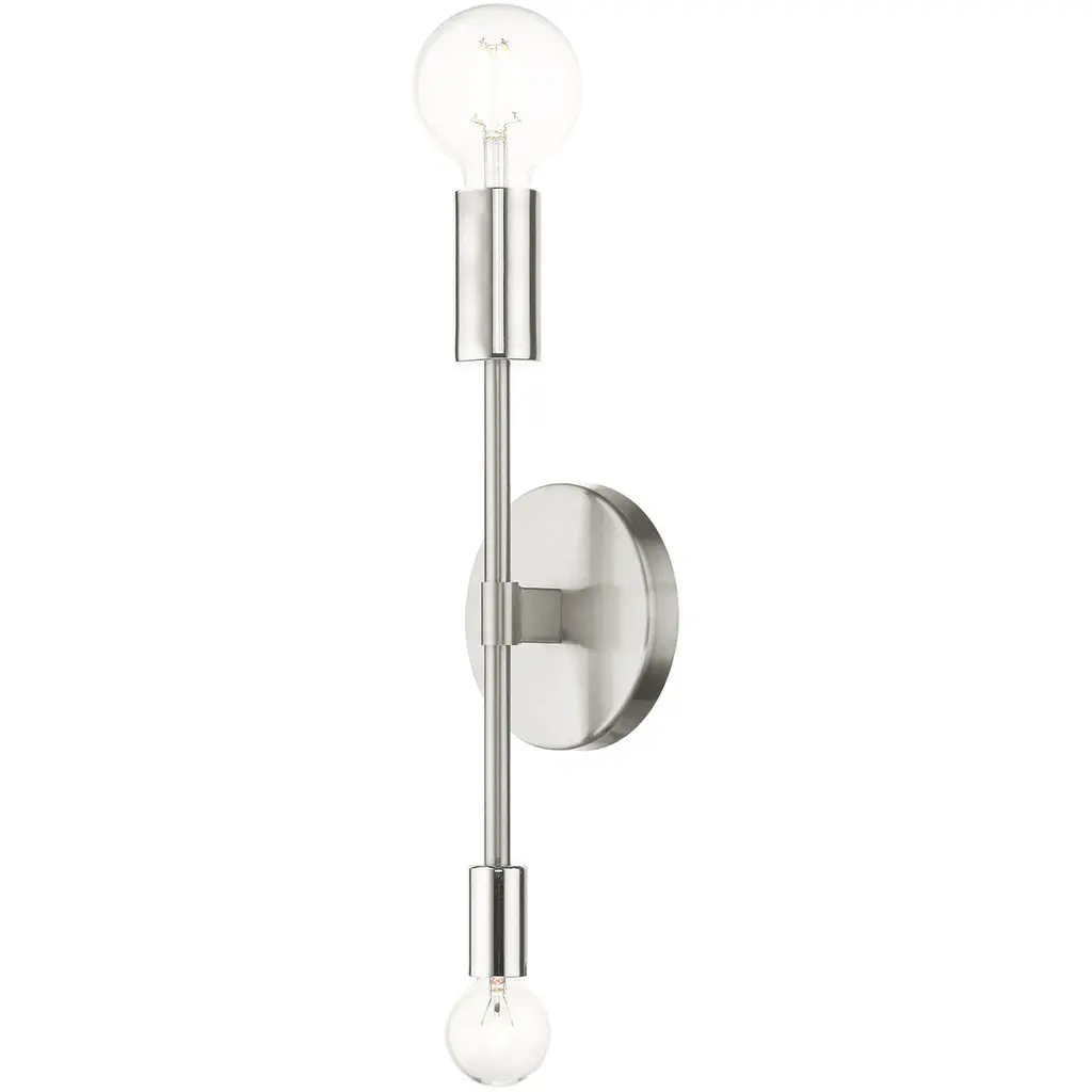 The Don Wall Sconce from Alder & Ore expands its surroundings with a stylish modern character. Made from steel, it starts with a sleek disc wall plate, extending a short rectangular bar out to a slender stem that terminates in a small socket below and a larger socket above, spilling out a compound wash of bright light around the fixture. Each lamp is damp-listed and ADA compliant, giving it a go-anywhere character that works equally well when mounted to walls or on either side of a vanity mirror.