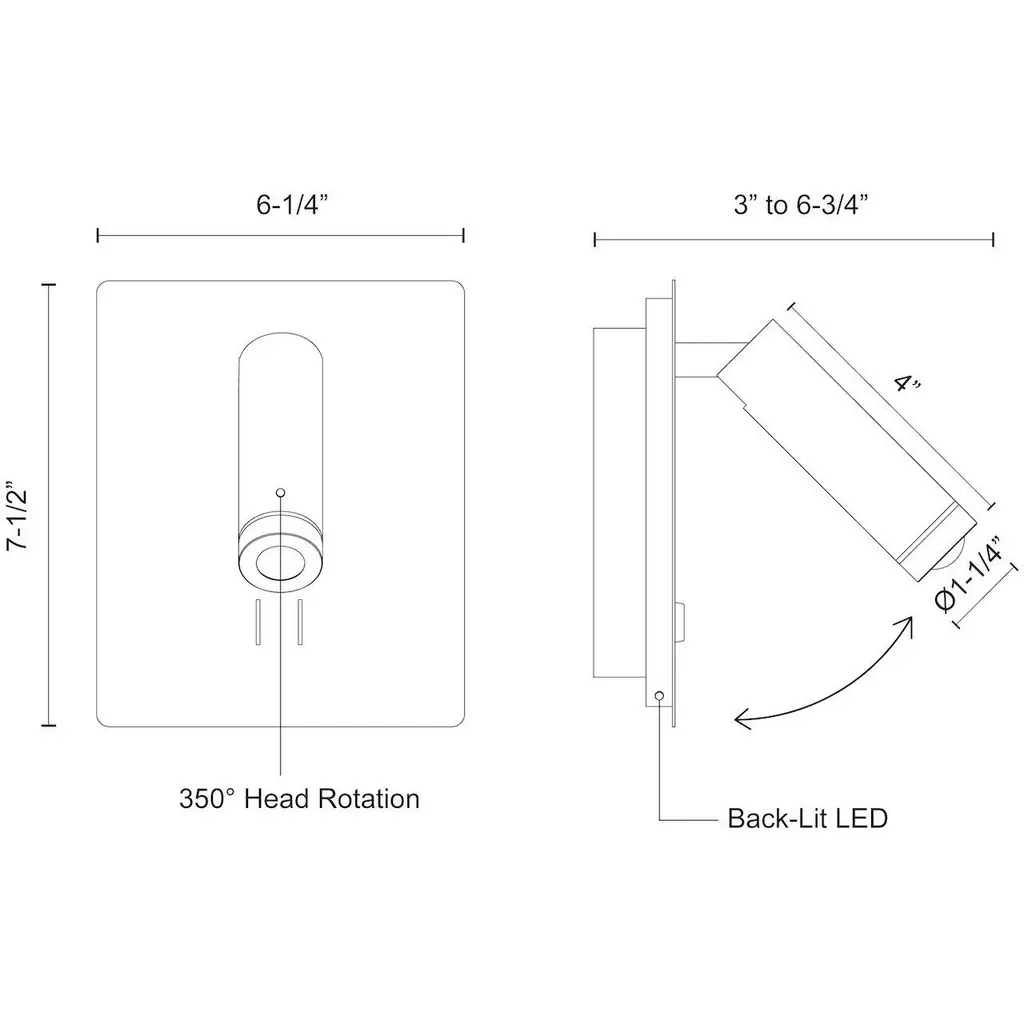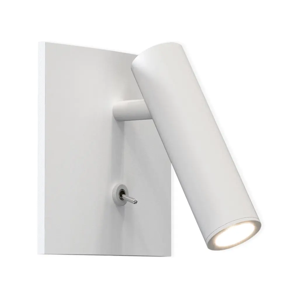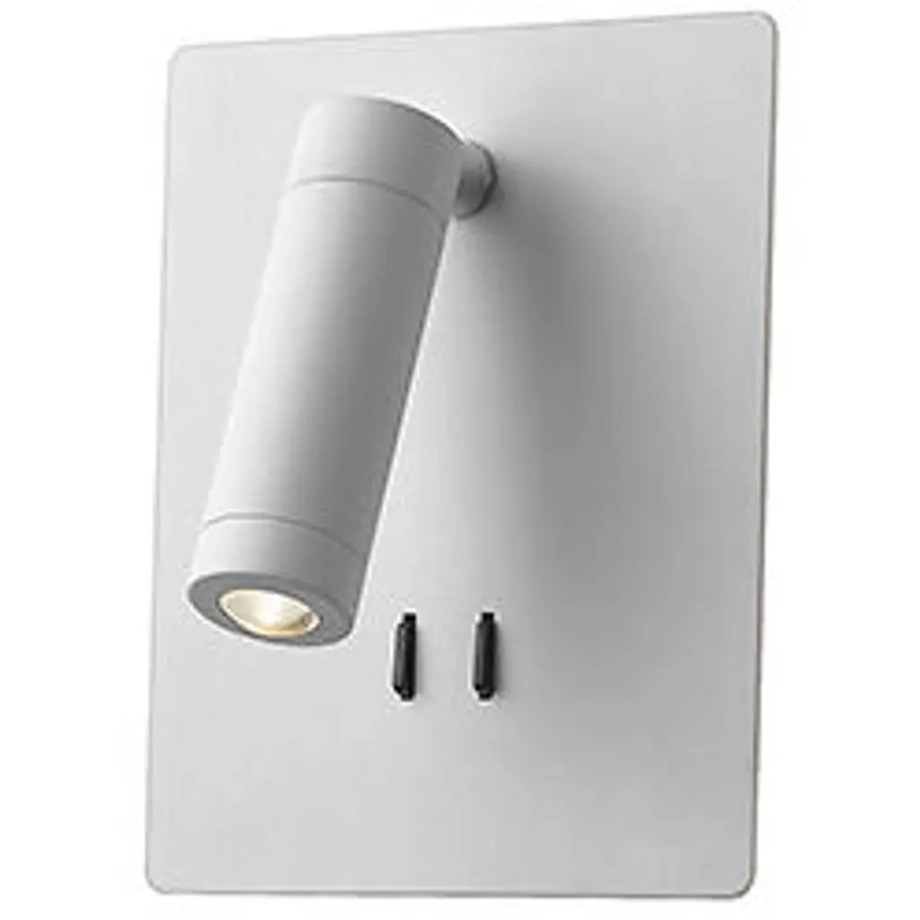 Perched on a rounded rectangular backplate an adjustable cylinder projects light where directed. The primary source of illumination in the DORCHESTER series is an LED spot focused by a fine convex glass optic. Integrated into the wall mount is a perimeter of ambient light connected to an independent switch. The larger product version adds further versatility with the addition of a phone shelf and concealed USB port.