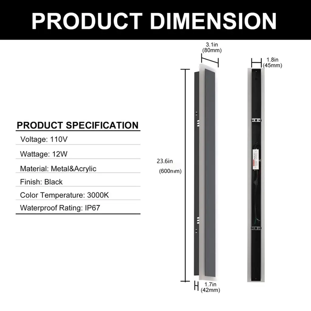 Doresshop 1-light 23.6 In. Black Modern Integrated Led Outdoor Wall Light For Garden, Waterproof Porch Lantern Sconce
