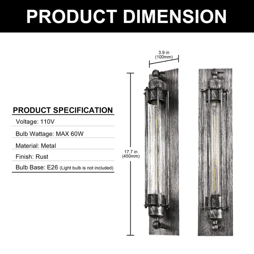 Add authentic industrial charm to your interior with this 1-light wall sconce featuring a rustic rust finish, perfect for salon, bar, or vintage-inspired spaces. Designed with an E26 socket and non-integrated bulb configuration (bulb not included), this fixture offers flexible lighting choices to suit your ambiance needs. The rugged iron exterior and classic design create a warm, inviting glow that enhances any room with a stylish, old-world feel. Ideal for accent lighting in hallways, lounges, or commercial spaces with a retro flair.