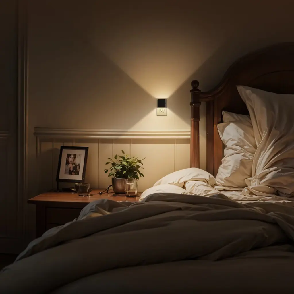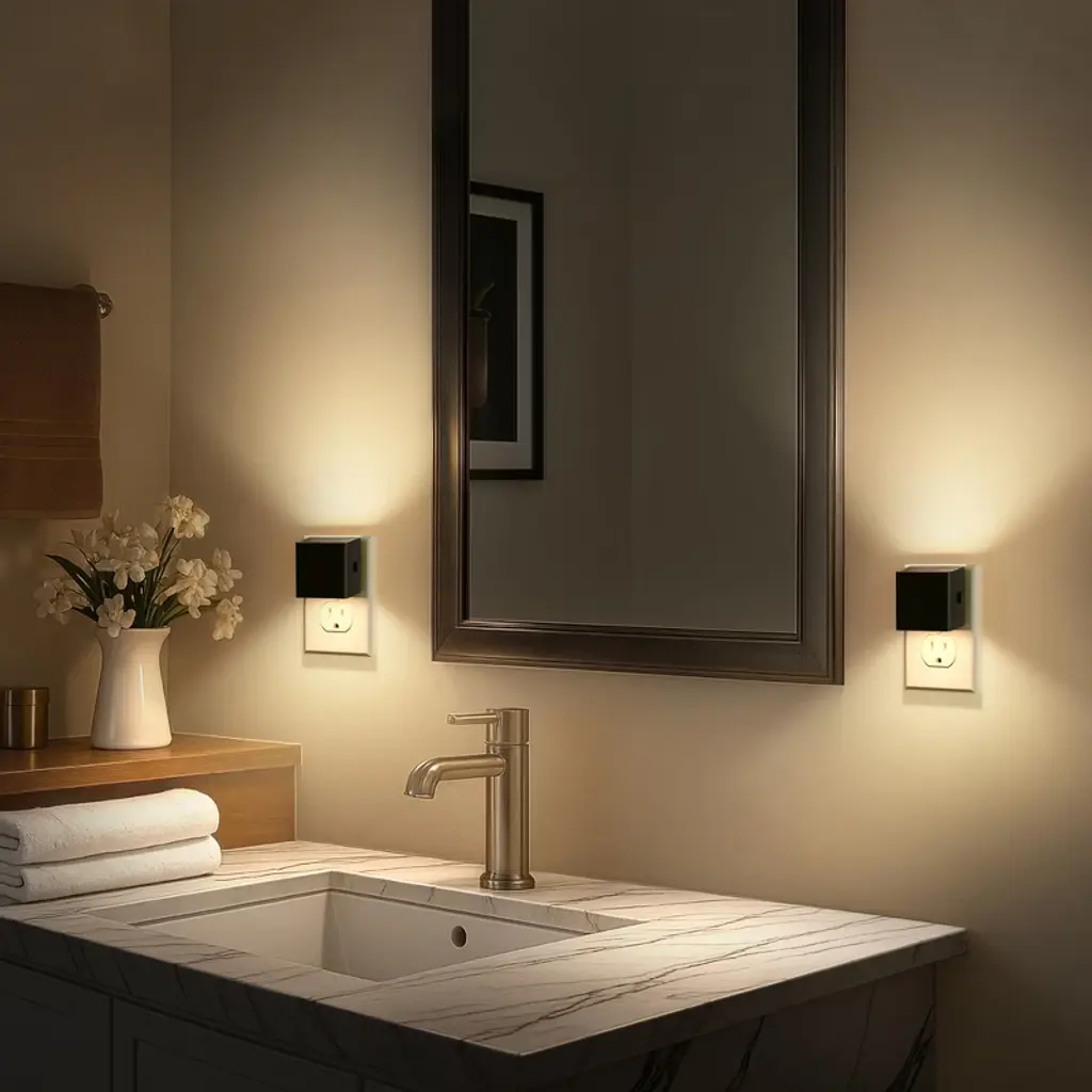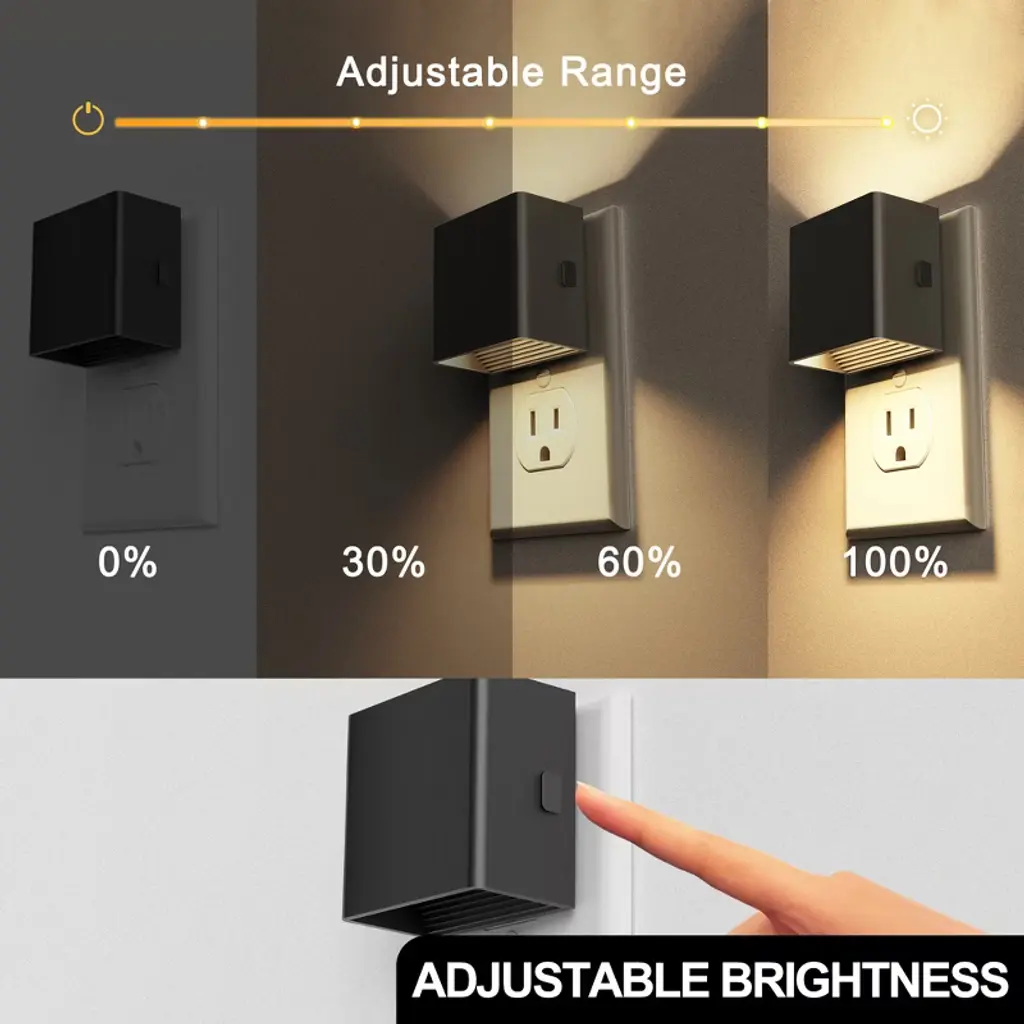 This LED night light features a sleek wall sconce-inspired design that emits both upward and downward lighting for enhanced ambiance. With three adjustable brightness levels and a built-in dusk-to-dawn sensor, it provides practical and energy-efficient illumination for any room. Ideal for adults and families, it's the perfect solution for soft, stylish lighting in dark spaces.