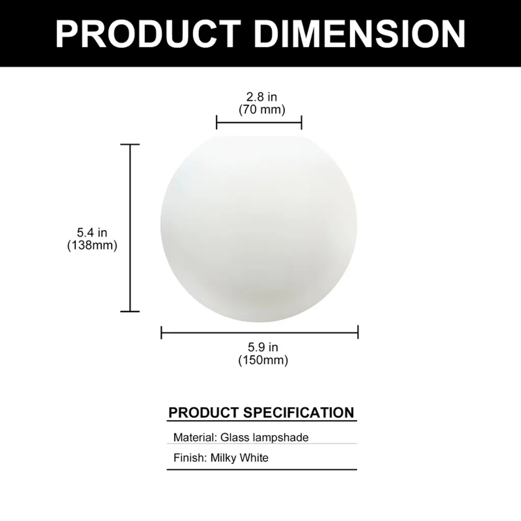 This frosted white globe-shaped glass shade is a perfect replacement accessory for your wall sconce. It provides gentle, even light diffusion while adding a clean and elegant look to your space. Made from durable glass, it¡¯s easy to install and fits most standard wall sconces, making it an ideal upgrade for your lighting fixtures.