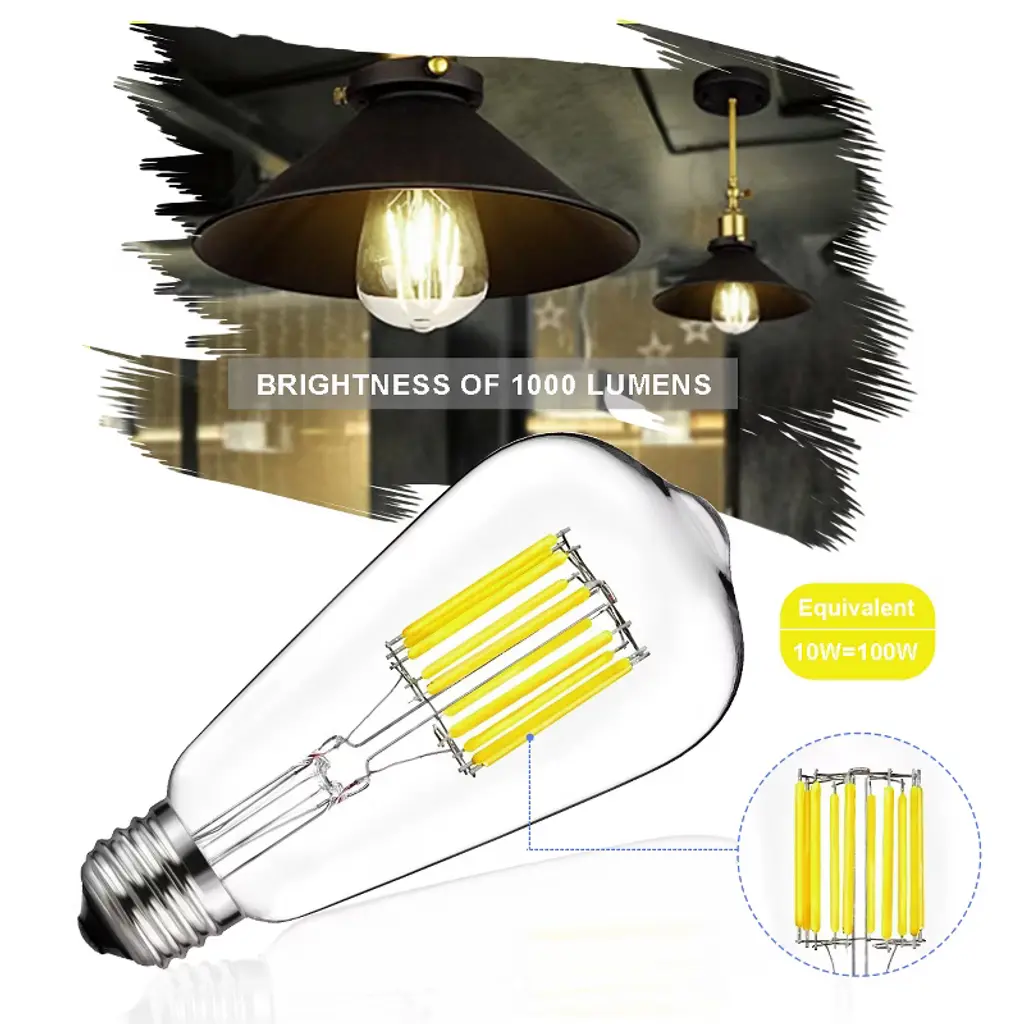 Combining the retro look of antique Edison style incandescent bulbs with the benefits of LED technology, these filament bulbs produce sparkling lighting effects without sacrificing your electric bills. They add vintage charm to any decor with its decorative, antique style and offer you the best lighting experience. With E26 base and attractive squirrel cage filament design, they are ideal for any transparent light fixture such as chandeliers, wall sconces and pendants.