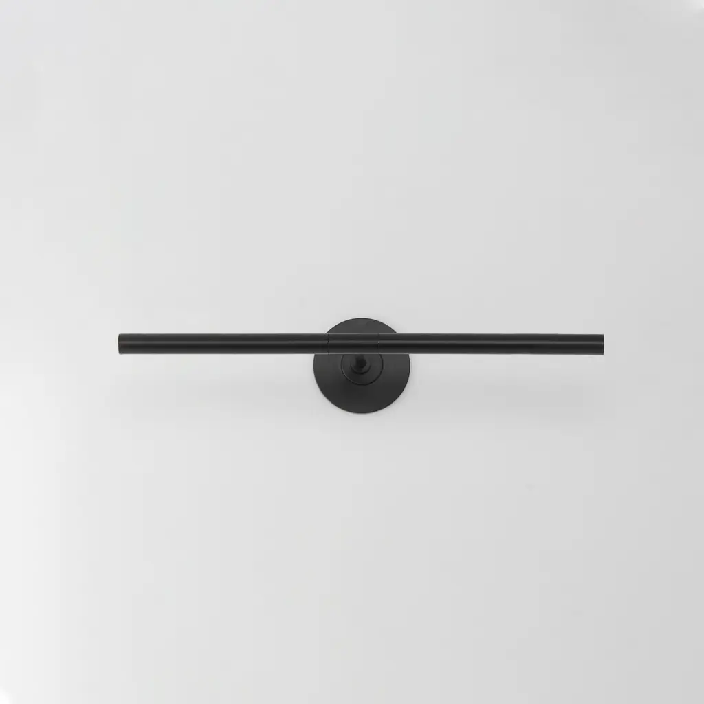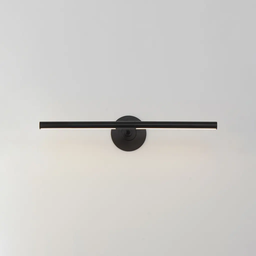 A bold and timeless sconce, Dorian features a sleek, square block support with two cylinder LED tubes that extend horizontally. These tubes rotate individually to position the LED light. The collection features linear and vertical pendant configurations with slender profiles. The elongated vertical pendants are perfect to light lofty spaces. Individual segments rotate to direct the light along areas such as stairwells and can highlight artwork and collectible displayed at taller heights. The wall-mounted sconces offer similar features with additional streamlined back plate designs that mounts to either a single gang junction box or common 3-0 or 4-0 boxes with cover plate included. The sconces work well as portrait lighting, integrated into shelving, or above bath vanities. Two options for extension including one that extends less than four inches for ADA compliance. Available in Matte Black, Polished Chrome, and plated Gold, this collection is a subtle, handsome design with timeless appeal.