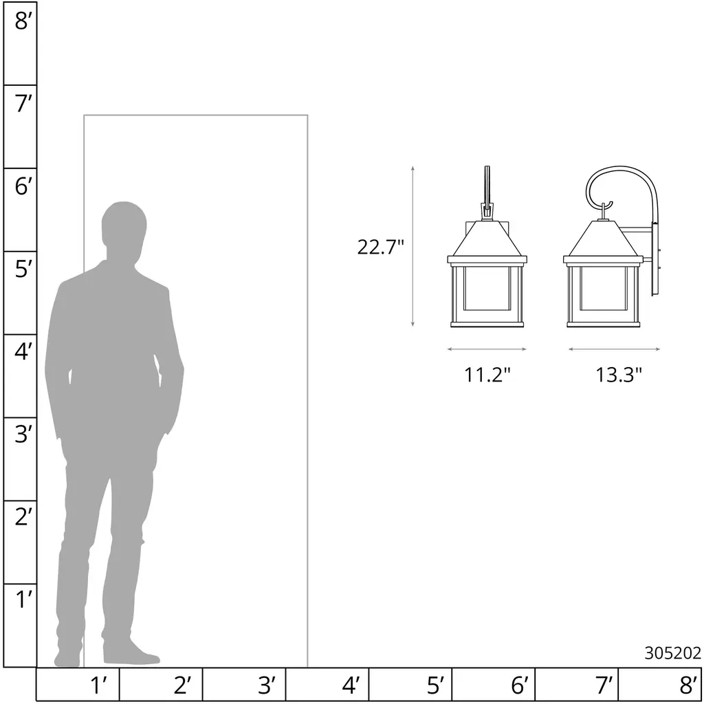 Designer Paul Marr Hilliard created the Dorset Outdoor Collection that balances traditional elements like the lantern shape and scrollwork with modern, minimalist lines. A gracefully curved scroll hook and loop at the top adds an elegant, decorative touch highlighting the Dorset's fine workmanship on this mid-sized exterior wall mounted Dark Sky Friendly sconce. A choice of opal or clear, seeded glass is available. Offered in a choice of AAMA 2604-rated Coastal Outdoor Finishes.