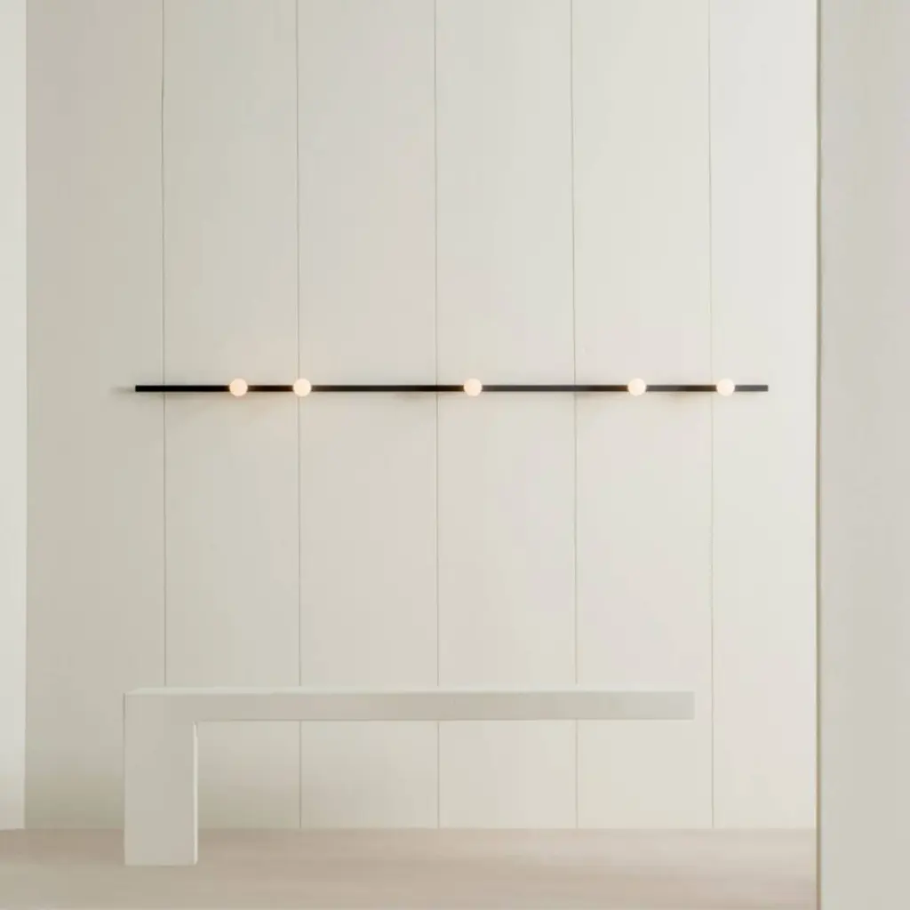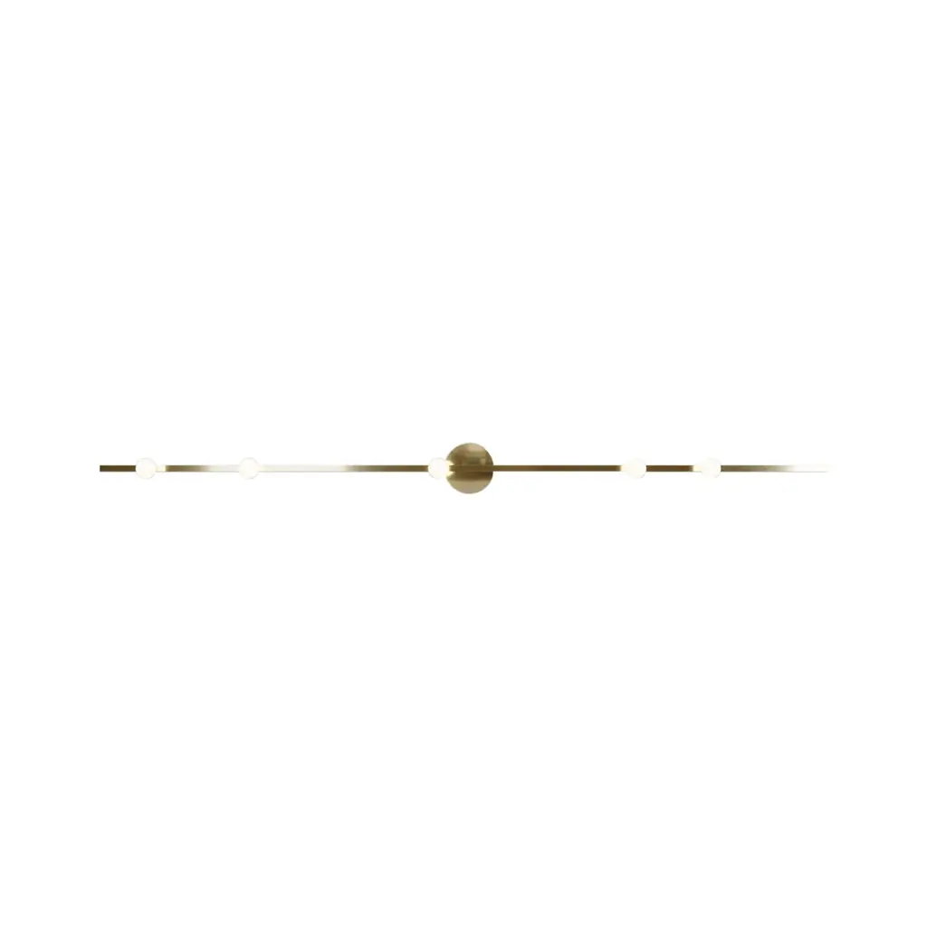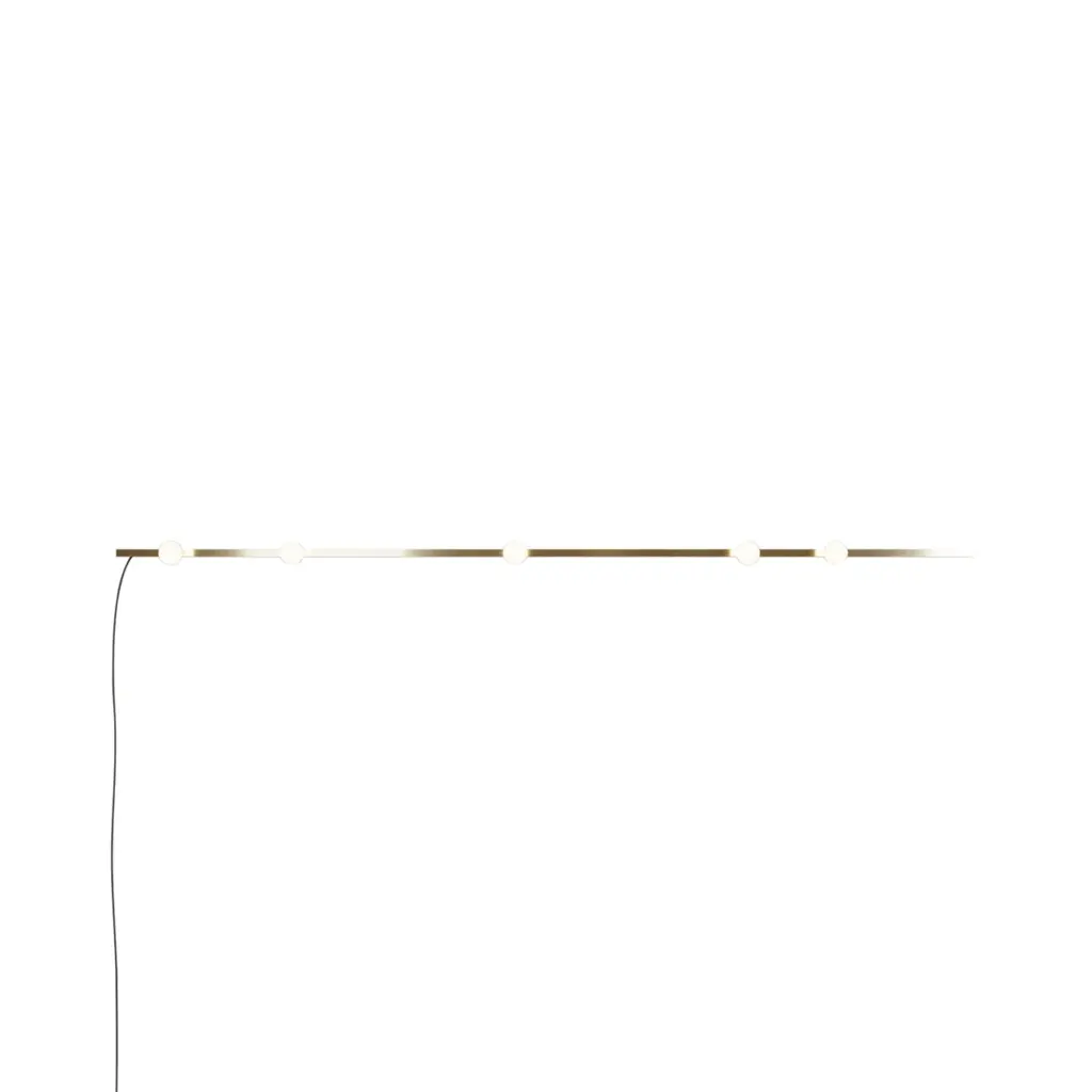 As the name implies, Lambert & Fils brings a linear interpretation to this Dot wall version with its exposed spherical bulbs. The elongated composition in a choice of brass or graphite features an asymmetrical arrangement of milk glass globes to provide luminous LED points of light. The geometric fixture is available in a hardwired version or with a plug-in cord, both handcrafted at the lighting maker’s Montreal atelier.