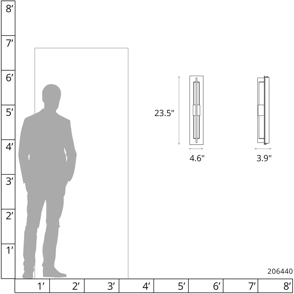 If you need to pull a room's design together, our small Double Axis LED Wall Sconce will help you find your center. A single, handcrafted aluminum arm angles around to clasp the glass at either end with a wider band bisecting the center.