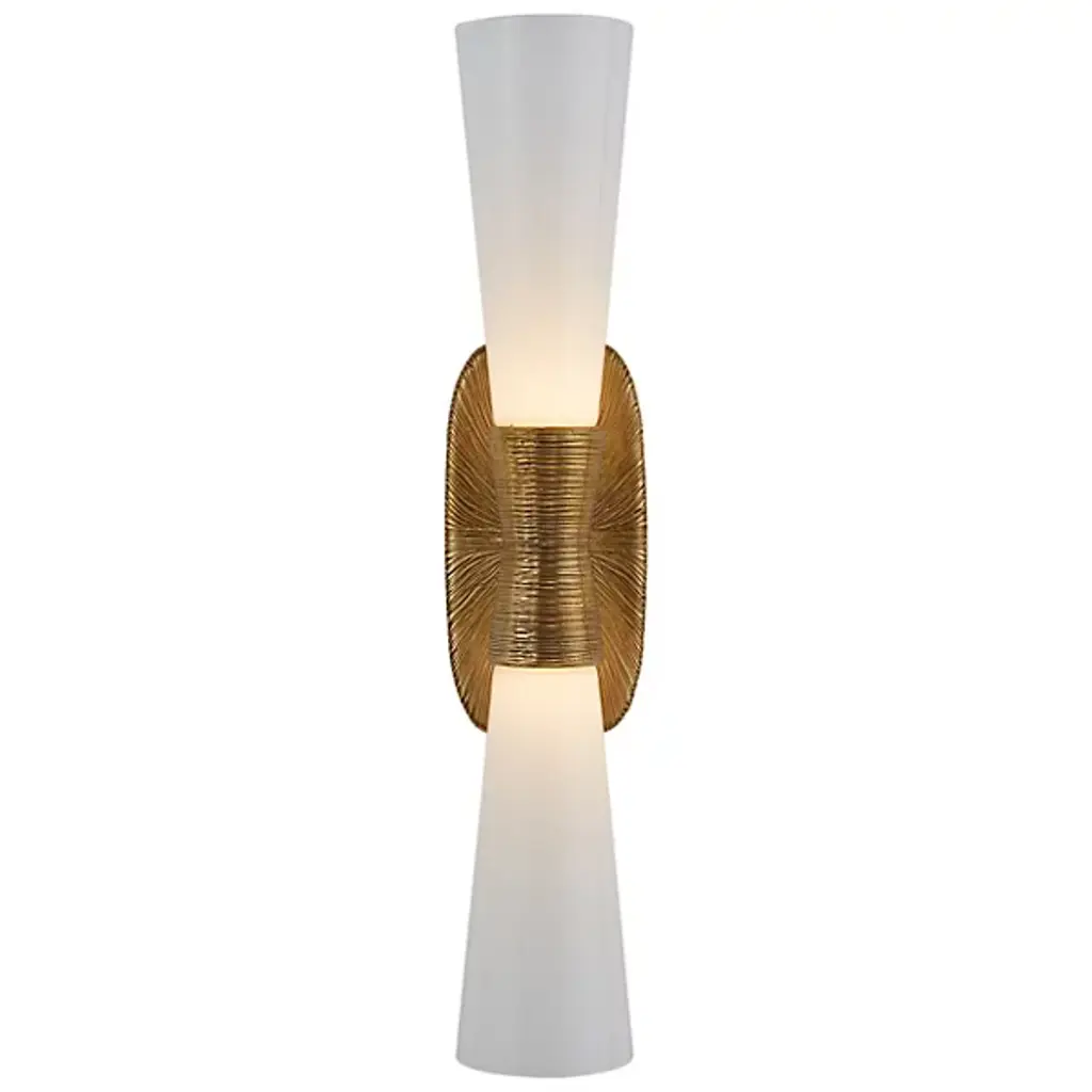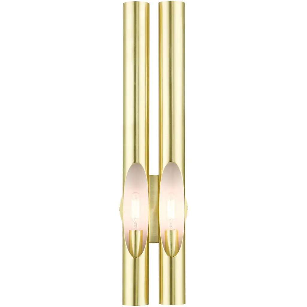 Elegant wall lamp with 4 natural alabaster stones in tube shape; the metal parts are in light antique brass finish. The minimal style perfectly matches both classic and contemporary furnishing.