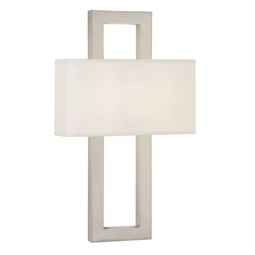 Rich to the senses like the popular confection by the same name, the Doughnut Wall Sconce from Robert Abbey heightens the elegance of any space it adorns. Made in sharp steel, its handsome frame outlines your walls in an architectural-defining rectangle. The open space in between lets the color of the wall come through, highlighting the sense of unity of this piece with your home. Its frosted glass shade mellows the vibrant bulbs while directing its energy upwards and downwards in a fanning ambient glow.