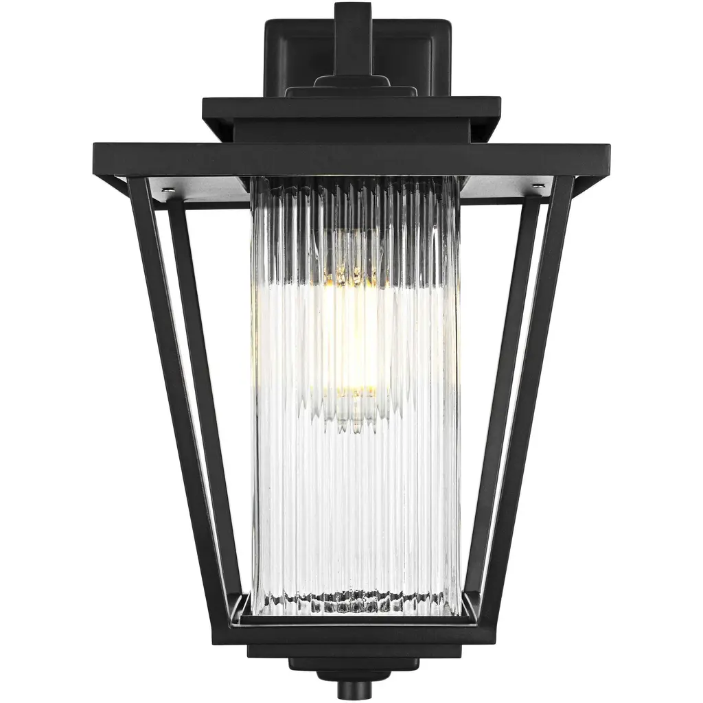 Elevate the aesthetic of your outdoor space with this sophisticated wall sconce that combines form and function effortlessly. Featuring a sleek, modern rectangular lantern design, this sconce is constructed with an iron frame and beautiful vertical fluted glass panels that diffuse light gracefully. The built-in dusk to dawn sensor ensures that your home remains well-lit at night while saving energy during the day by automatically turning the light off at sunrise. Finished in matte black, this sconce is versatile enough to suit various exterior styles, adding both elegance and practicality to patios, entryways, and garages. With an ETL rating for wet locations and durable weather-resistant construction, this outdoor wall sconce is both stylish and dependable, providing a warm, welcoming glow to your outdoor living area.