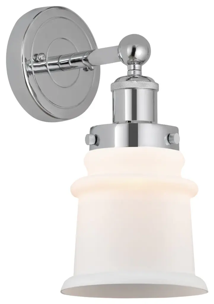 Innovations Lighting 288-1W-PC-G311 Dover 1 Light 4.5 inch Sconce. Style: Transitional, Industrial, Restoration-Vintage. Collection: Nouveau 2. Material: Steel, Cast Brass, Glass. Metal Finish(Body): Polished Chrome. Metal Finish(Canopy/Backplate): Polished Chrome. Dimension(in): 10.875(H) x 4.5(W) x 6.5(Ext). Bulb: (1)60W Medium Base Vintage Bulb recommended(Not Included). Voltage: 120. Dimmable: Yes. Color Temperature: 2200. CRI: 99.9. Lumens: 220. Maximum Wattage Per Socket: 100. Glass Shade Description: Matte White Cased Dover. Shade Material: Glass. Glass or Metal Shade Color: Matte White. Glass Type: Frosted. Shade Size Dimension(in): 4.5(Dia) x 6.5(H). Shade Fitter Measurement: 3.25 inch Fitter. Canopy Dimension(in): 4.5(Dia). Backplate Dimenison(in): 4.5(Dia) x 0.75(Depth). ADA Compliant: No. UL and ETL Certification: Damp Location.