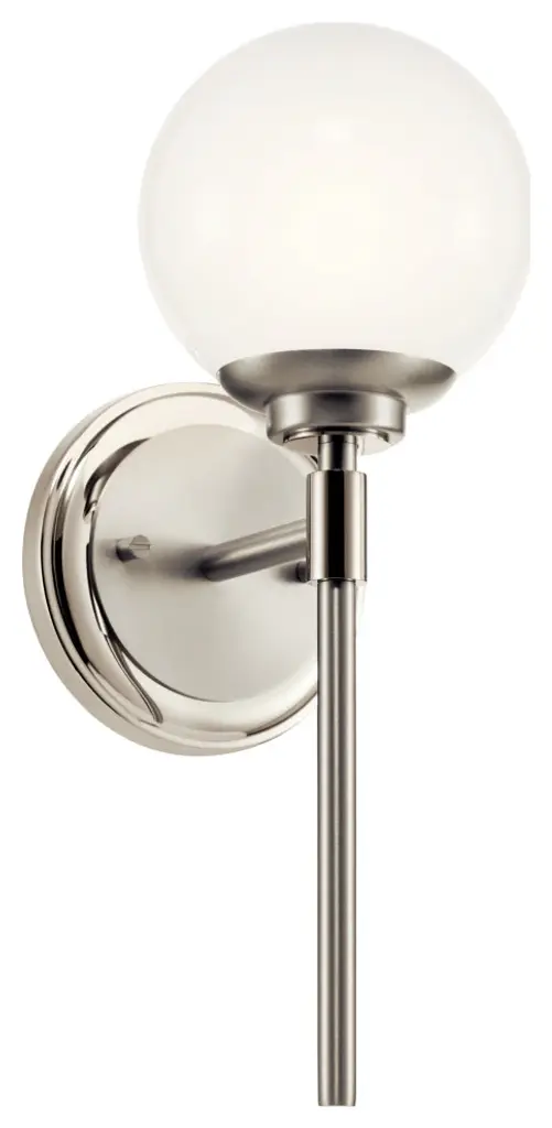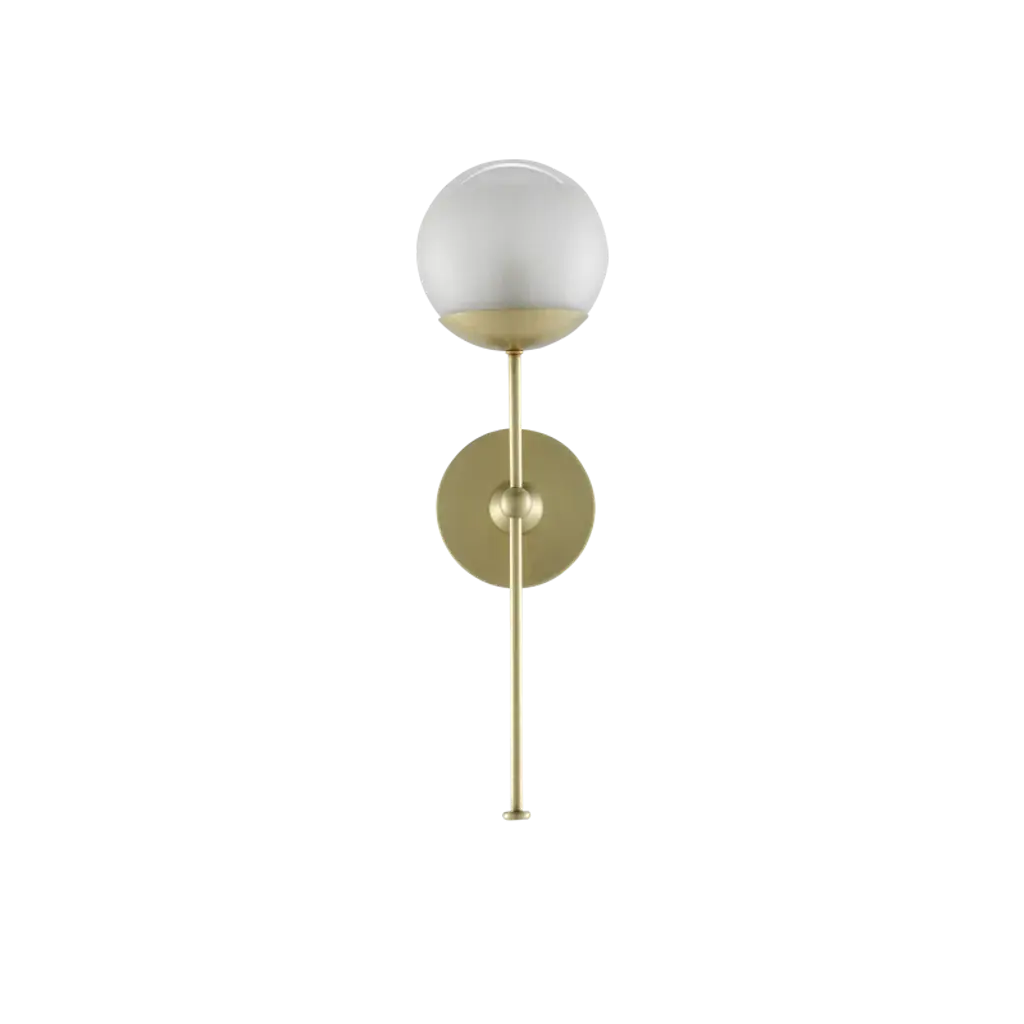 DOVER is a bathroom wall lamp in satinised glass and brass. With its essential design and refined elegance, it is perfect for adding a touch of classicism to the most refined contemporary bathroom. The spherical diffuser is in white frosted glass, the arm in turned brass.FeaturesMaterials: brass | frosted glassFinishes: chrome | light gold | polished nickelClassification: IP20*Power: MAX 40 WATT - E14 IBT, IBCWeight: 2.8 Lbs