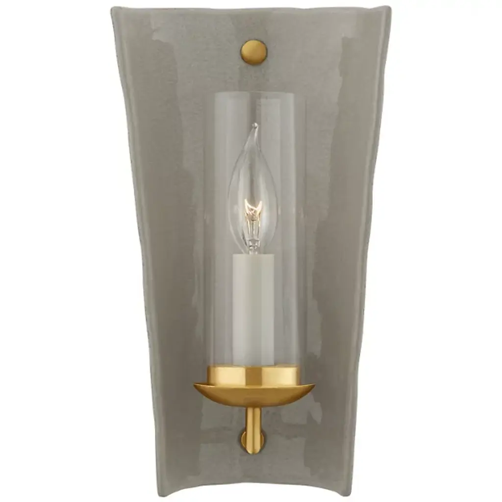 The Downey Wall Sconce by Visual Comfort Signature, formerly known as Visual Comfort, brings a contemporary and elegant touch to spaces within your home. Simple shapes compose this wall sconce as a beautiful curved ceramic backplate frames a clear cylindrical shade that has a single candelabra within, both set upon a rounded candle plate. The minimalistic silhouette of this wall sconce lends spaces a handsome look as the visible light source casts an even layer of illumination onto surroundings.