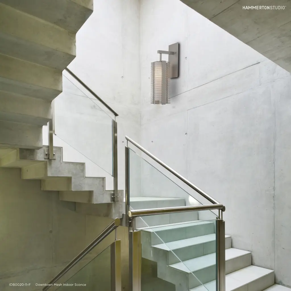 Downtown Mesh Indoor Sconce-11-Matte Black-Frosted Glass-E26