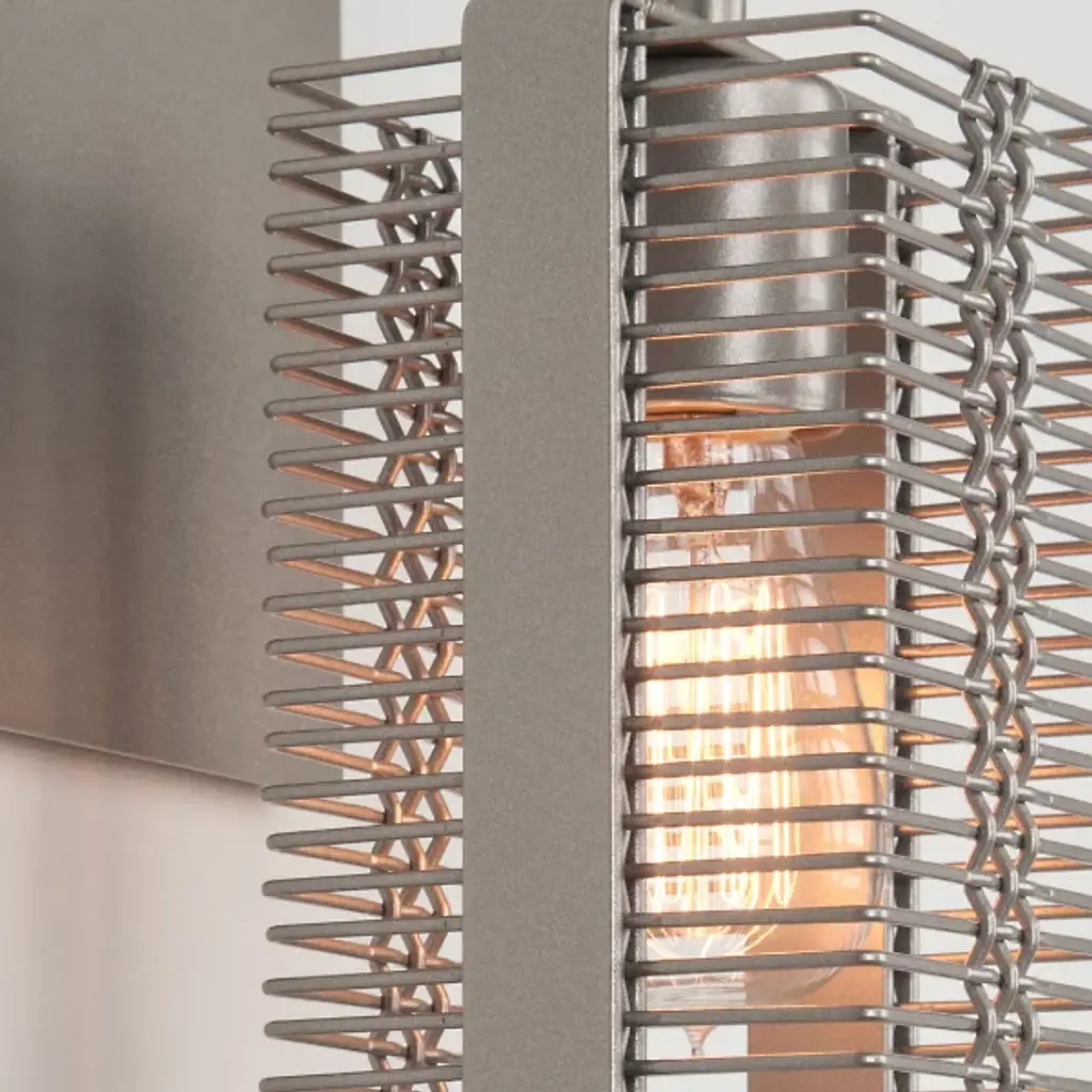 Contemporary aesthetic and construction. The Downtown Mesh Indoor Wall Sconce from Hammerton Studio is a slight departure from the standard open mesh aesthetic, with thin stripes of metal woven together. The steel used to create the rectangular mesh shade is steel that's strong enough that it has earned the nickname "rock crusher screen." It is woven by hand from skilled artisans, who give it a rugged since that's simultaneously airy and elegant.