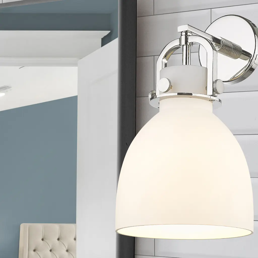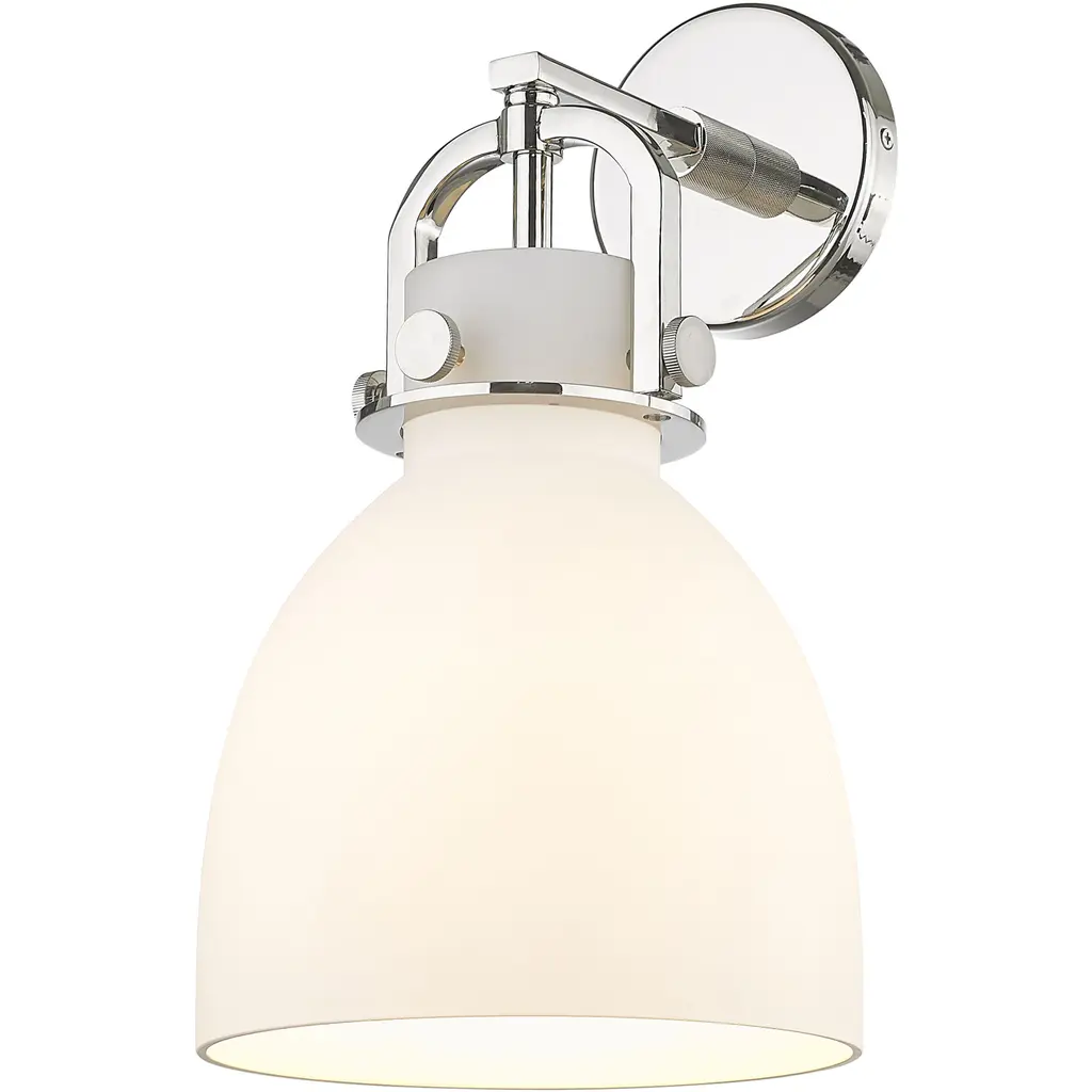 Downtown Urban Newton Bell Armed Sconce Wall Light In Polished Nickel, Matte White