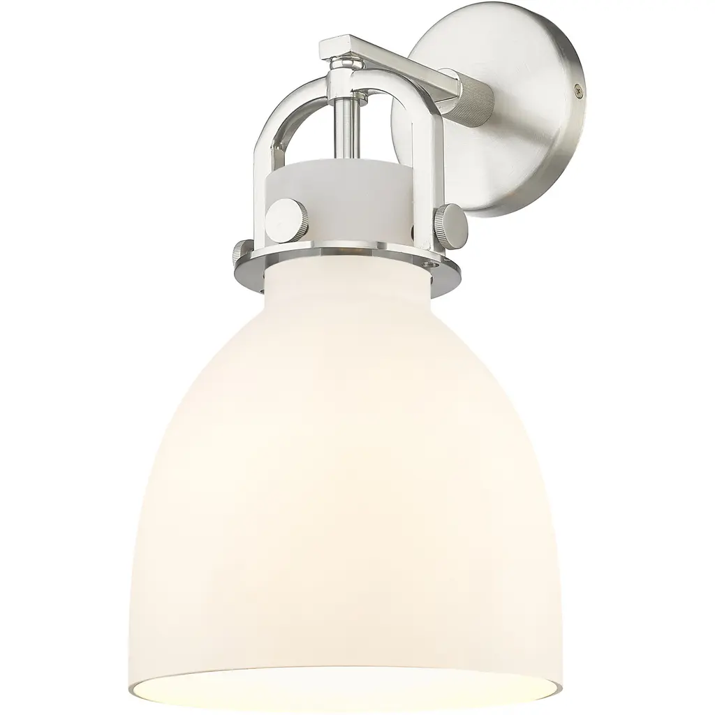 Downtown Urban Newton Bell Armed Sconce Wall Light In Satin Nickel, Clear