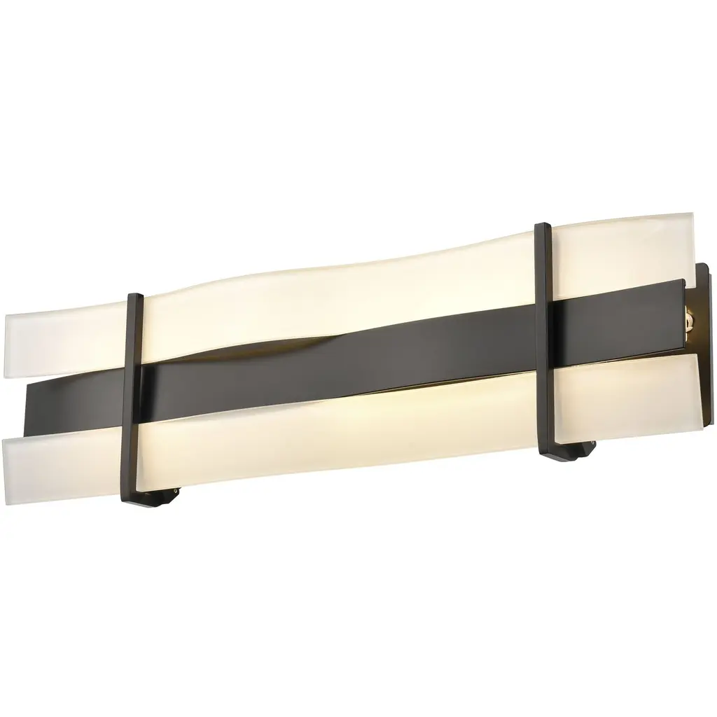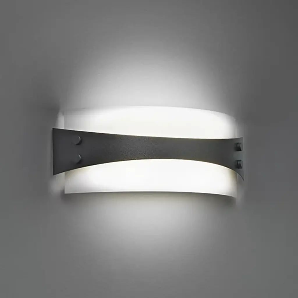 Like the pages of a book, the eyes scan from side to side with the dramatic lines of the Dozza Horizontal LED Wall Sconce from Huxe. The sconce's tight design is perfect across hallways or over a column. It creates the illusion of floating through a hidden mounting plate. Coming forward, an opal acrylic shade keeps the LEDs away from sight with a glare-reducing curve. The smooth and light shade focuses on the textured and robust metal band in front. Protruding accents on the band evoke modern industrial design. Once turned on, the sconce eases a calm cast glow over the wall vertically.