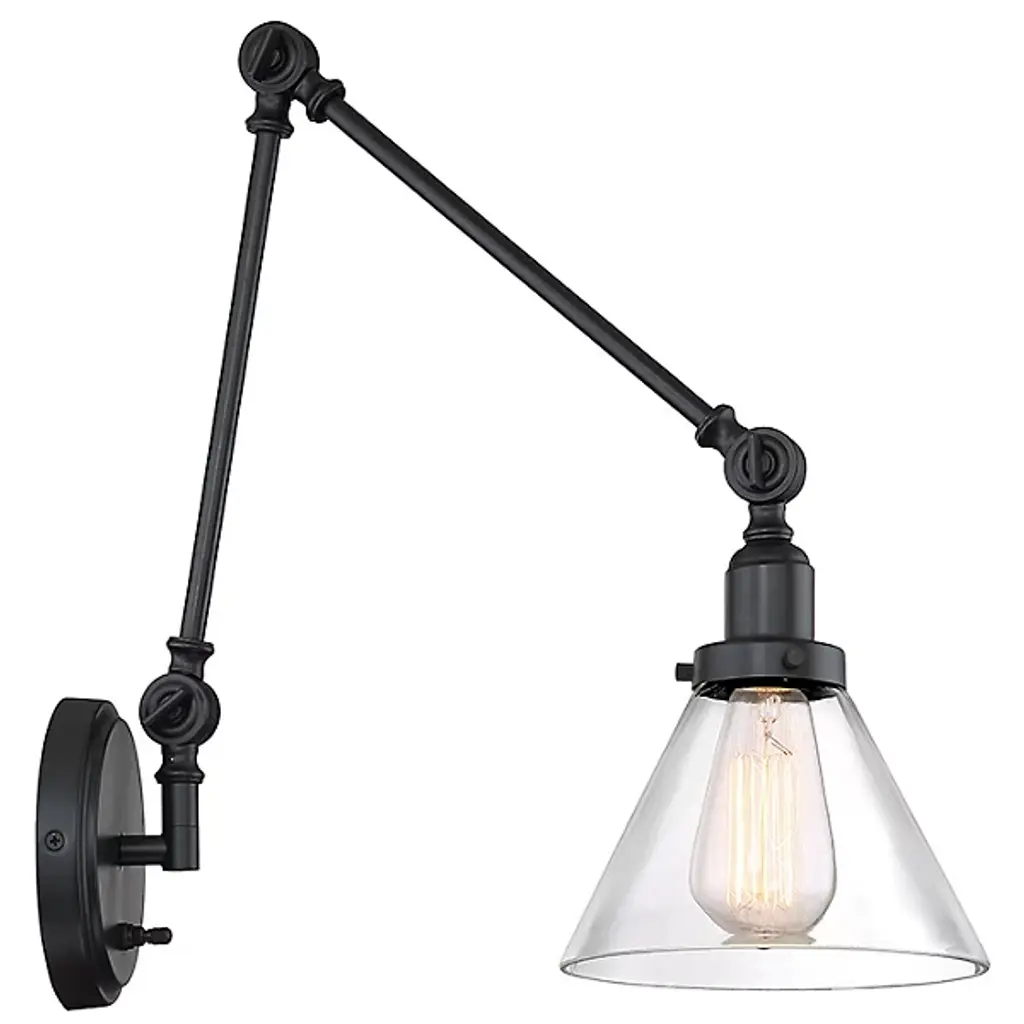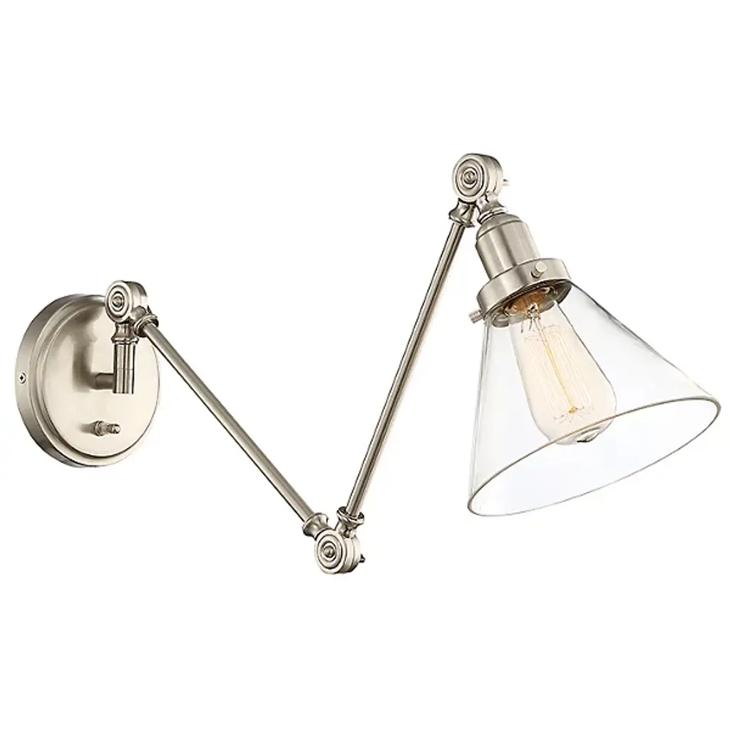 The perfect mix of task and functional lighting, the Savoy House Drake Adjustable Wall Sconce has a simple yet alluring style that can fit a variety of rooms. Adding versatility to its repertoire, this wall sconce can be hard-wired or installed as a plug-in. Switch on wall plate.