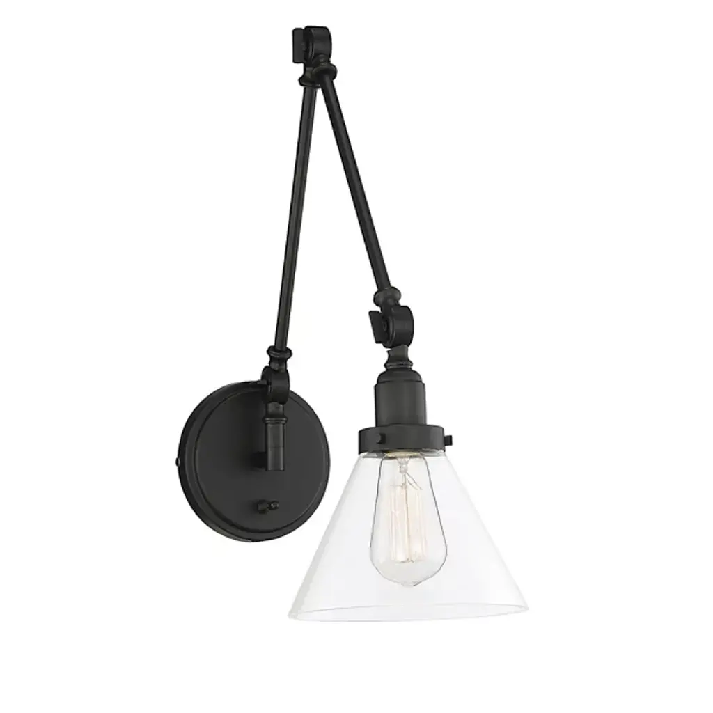 The perfect mix of task and functional lighting, the Savoy House Drake Adjustable Wall Sconce has a simple yet alluring style that can fit a variety of rooms. Adding versatility to its repertoire, this wall sconce can be hard-wired or installed as a plug-in. Switch on wall plate.