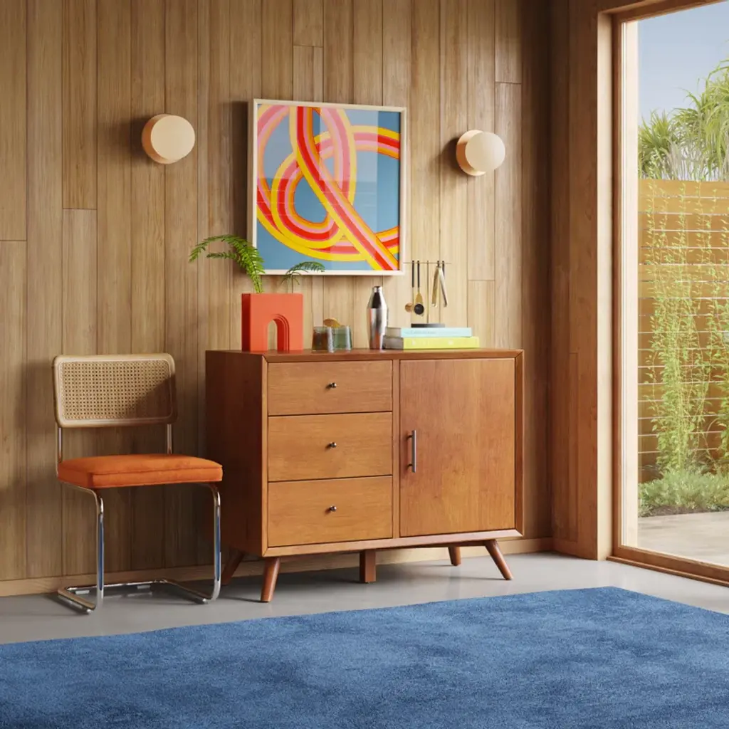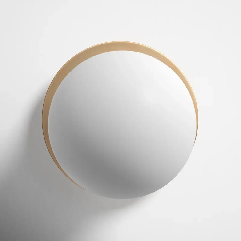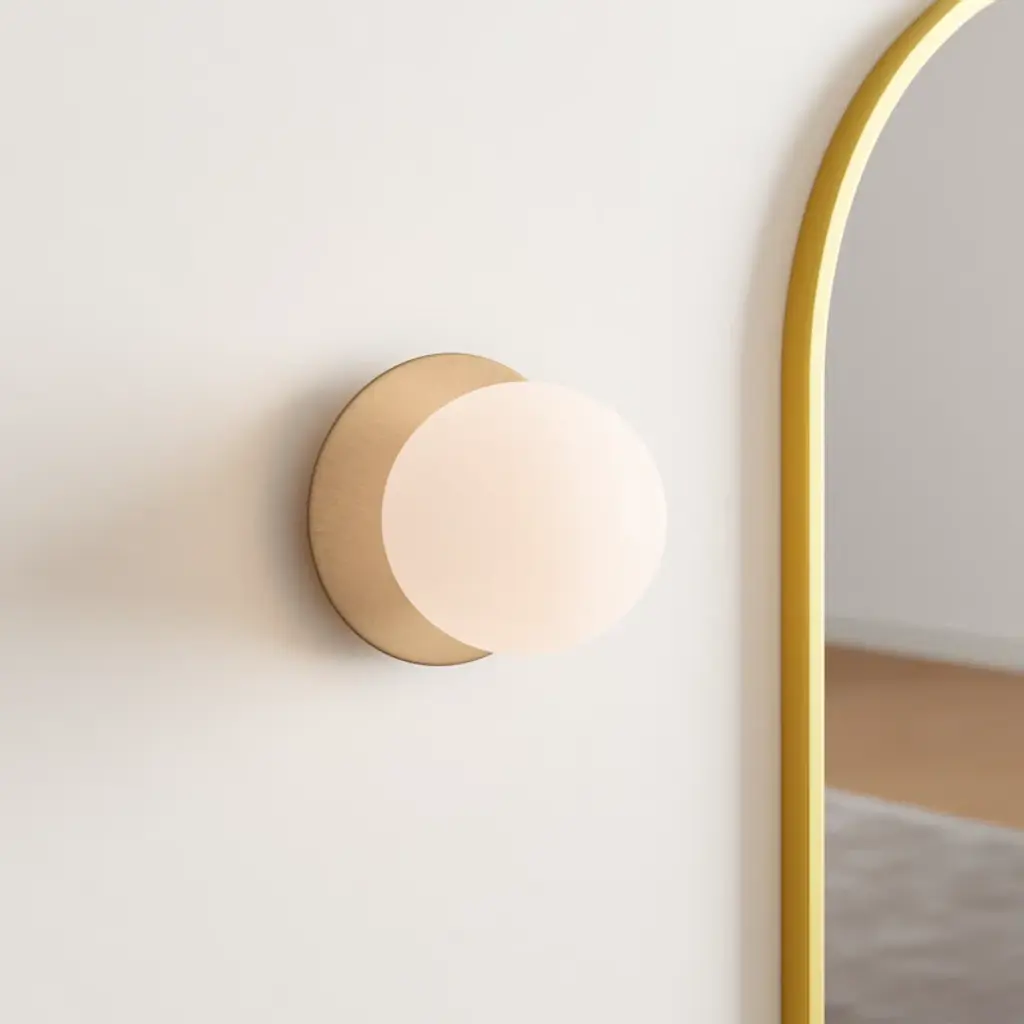A mid-century moment. This flush mount light features a hand-blown frosted glass globe shade and a circular backplate, for a scaled-back silhouette. Crafted from metal in a luxe satin-brass finish, it’s dimmable and suitable for use in damp locations, so it can brighten a bathroom or covered porch.