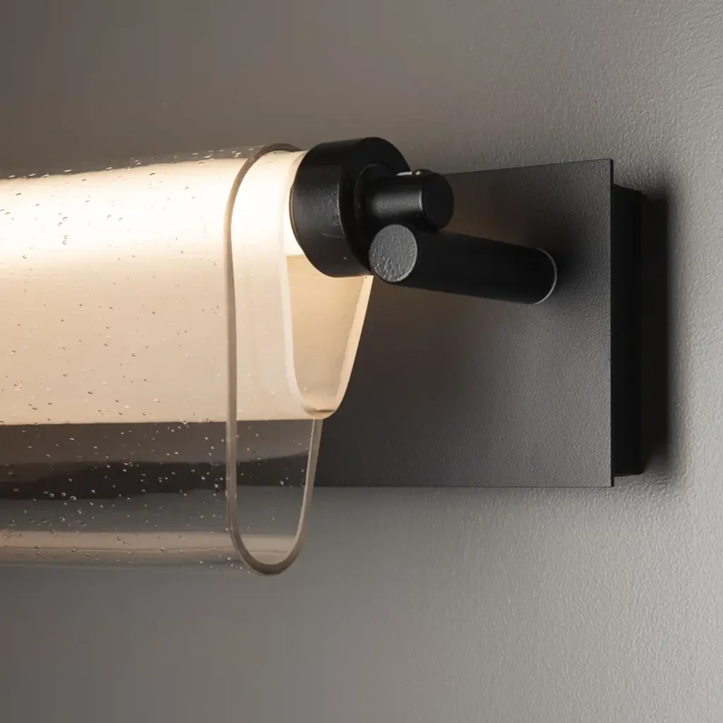 With a flowing design, the Draped glass LED bath bar is perfectly suited to vanity applications. With unique slumped glass elements, the inner glass frosted, and the outer a clear seeded glass, this beautiful, fluid piece offers a sense of movement to its space.