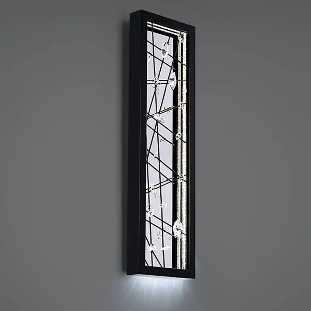 The Dreamcatcher LED Outdoor Wall Sconce from Schonbek Beyond brings an ethereal sensibility to your living space. This wall sconce takes on a rectangular shape and boasts an open frame. Lovely optic glass balances delicately to emit light produced by an integrated LED. Your light fixture is built for the outdoors and is Energy Star Qualified. Place this light on your exterior wall and illuminate your patio and garden spaces with ease.