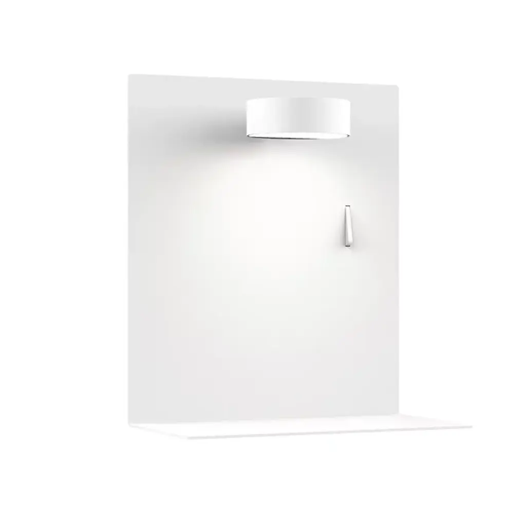 Round puck light with adjustable head, in Black and White finishes. Available with phone shelf and USB charging port.
