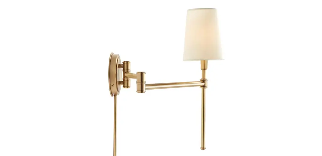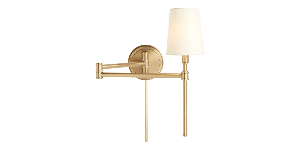 Drew's traditional beauty comes from its classic pole arm, polished brass finish, and tapered off-white shade. Perfect as a bedside companion, with an articulating arm you can position however you like for reading, ambient light, and more.
