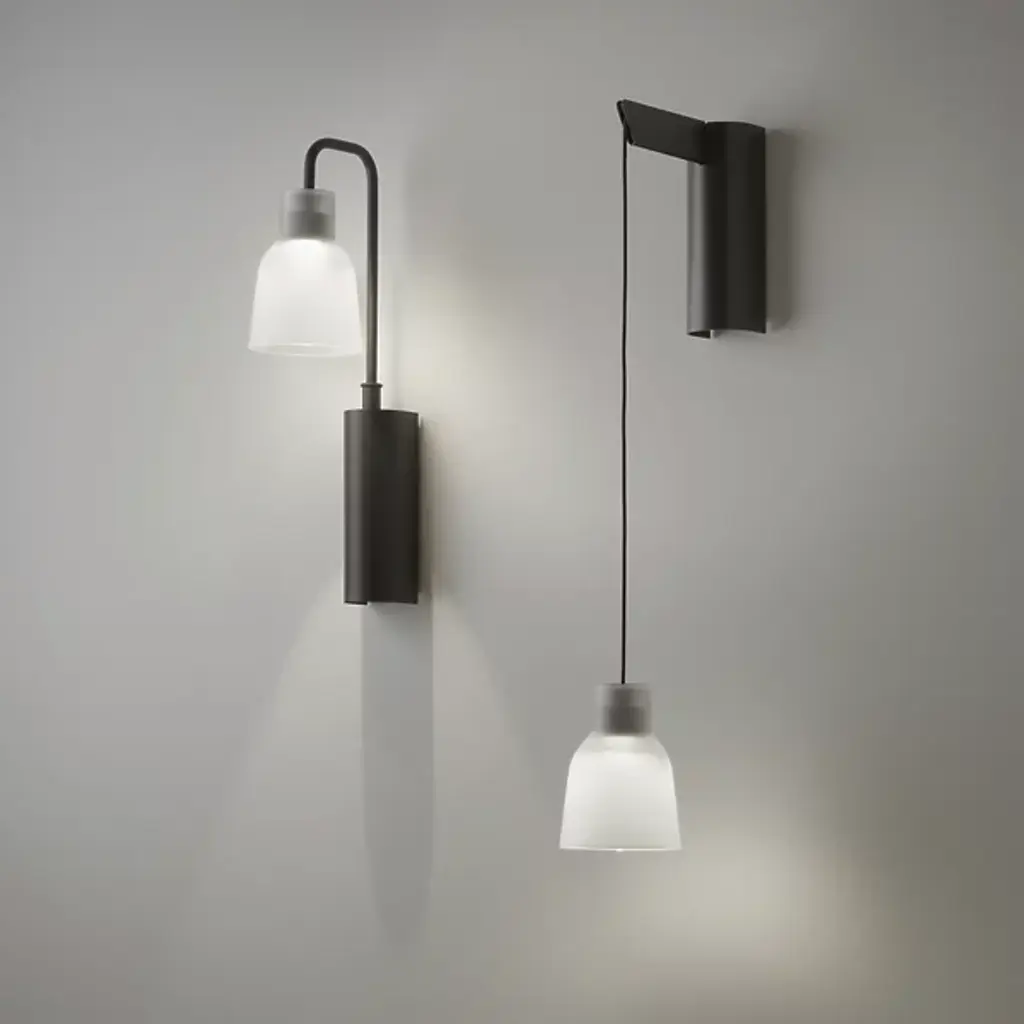 The finer side of lighting. The Bover Drip LED Wall Sconce features an elegant wall light option for interiors of all kinds. Showcases a beautiful glass shade that looks down on its cylindrical body, contrasting sharply with a round wallplate. Its Borosilicate glass features a smooth, glossy structure that brings a calming effect to everything around it. Offers a warm, ambient light that sets the tone for the space surrounding it. Line several Drips in a row for a lovely display.