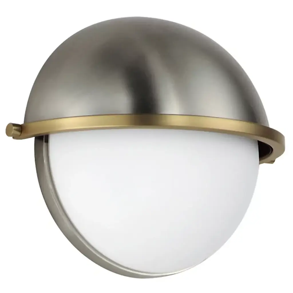 The Duke Wall Sconce from Maxim Lighting marries mid-century modern and transitional elegance. Crafted with precision from steel, this wall sconce features a captivating glass shade, forming a globe shape embraced by the yoke-style framework. An efficient LED provides brilliant illumination, while a separately sold ELV dimmer lets you adjust ambiance. This fixture easily mounts your wall, enhancing the visibility of your halls, entryways, and more. Its rounded motif adds versatility.