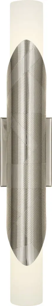 Deck out your halls with a touch of the natural using the Dumaine Wall Sconce from Visual Comfort Signature, formerly known as Visual Comfort, A simple Julie Neill design, it starts with a simply-stepped rectangular wall mount holding a slim stem diagonally cut on the bottom, before concluding in a crumpled sheet of metal cut into a leaf shape wrapping the lamping. The Dumaine is damp-rated and great for kitchen or bathroom use, while the sheet itself is pierced with pinholes that allow bright sparks of light through the fixture’s front.