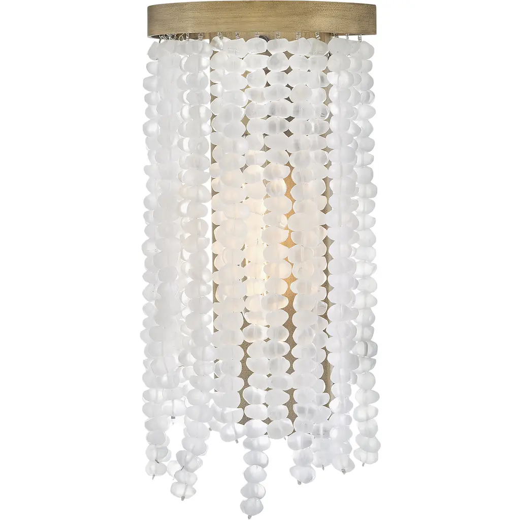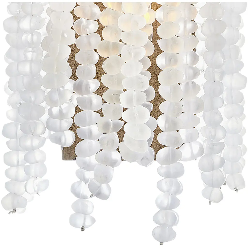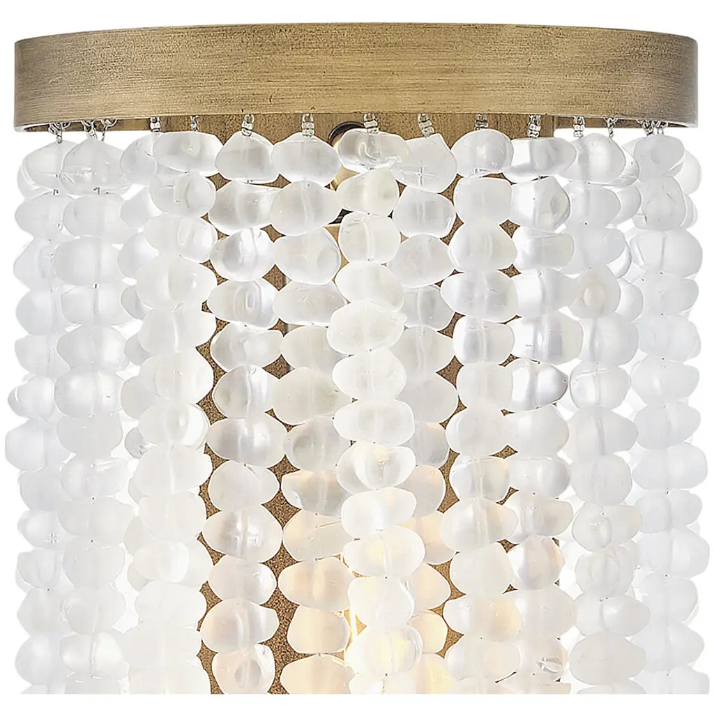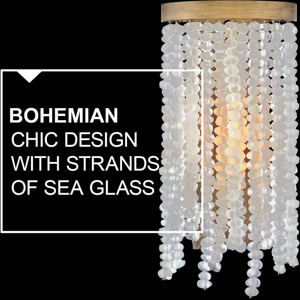 Dune's bohemian chic design showcases strands of soft sea glass combined with a Burnished Gold finish. The designs blend a sophisticated silhouette with organic elements inspired by sun and surf. Dune infuses any space with timeless, mesmerizing elegance.