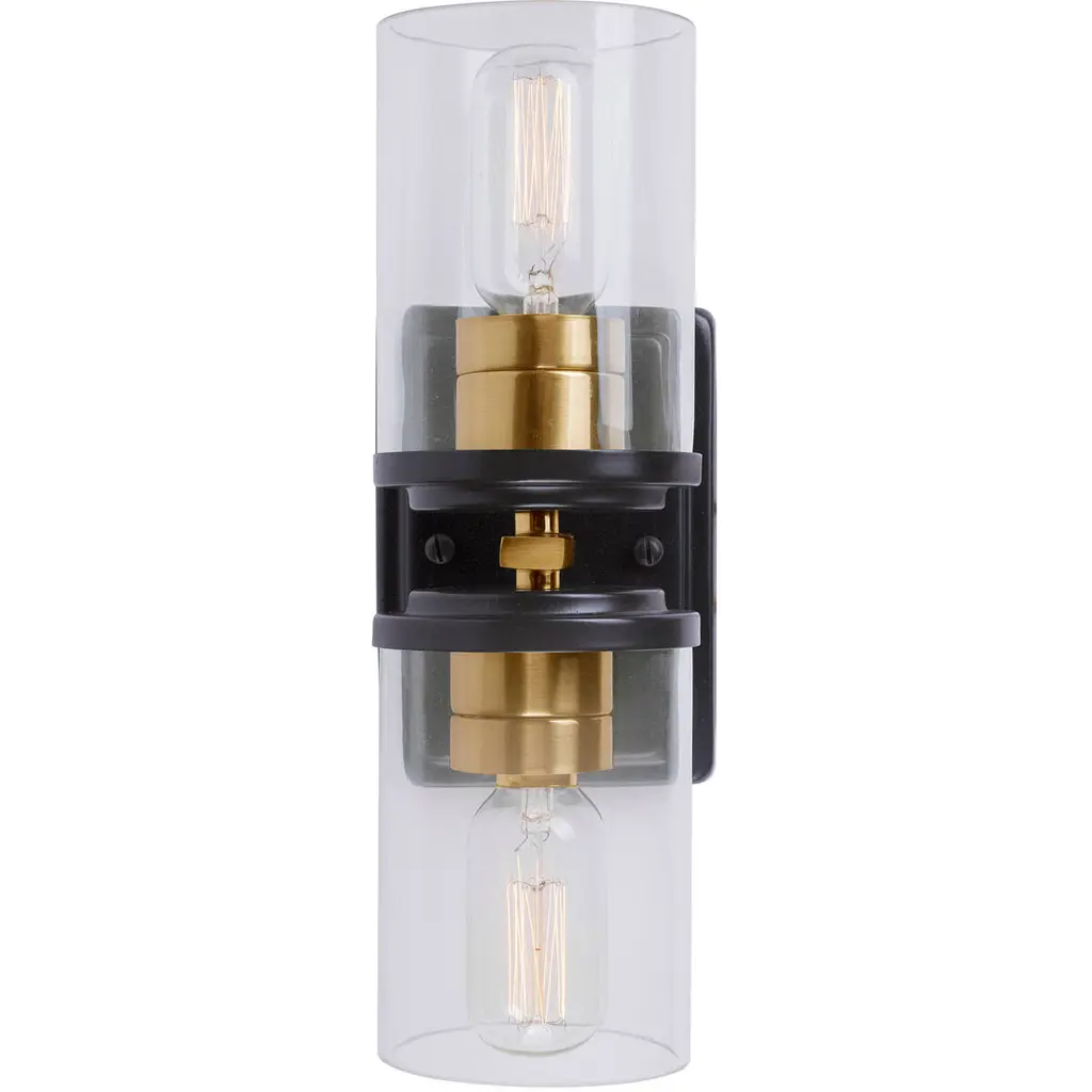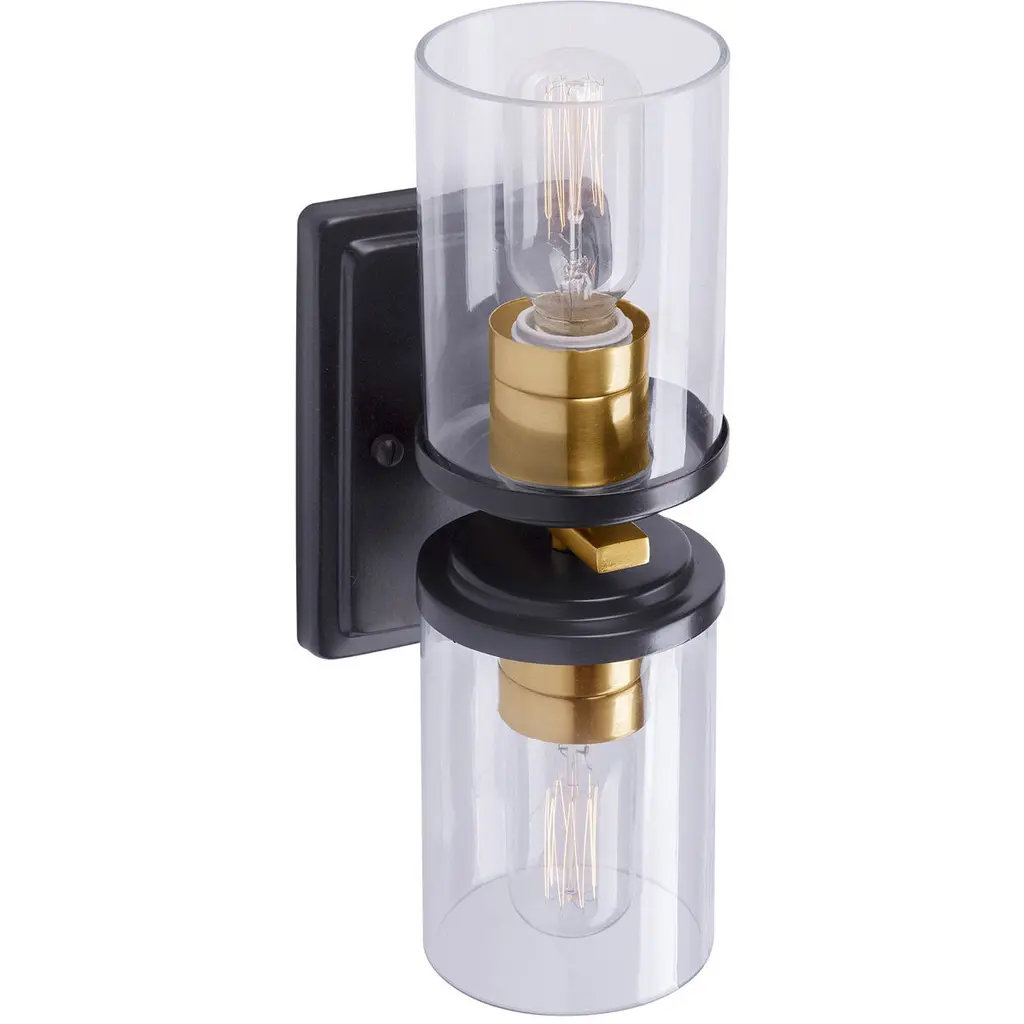 2-Light Black and Soft Gold Wall Sconce with Clear Glass