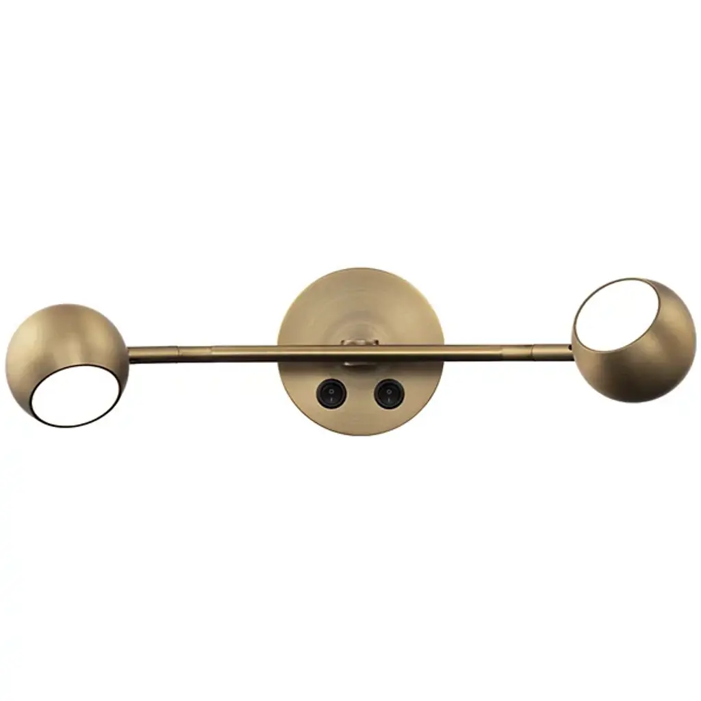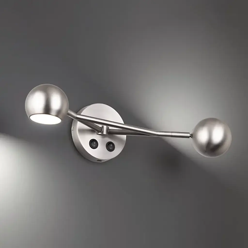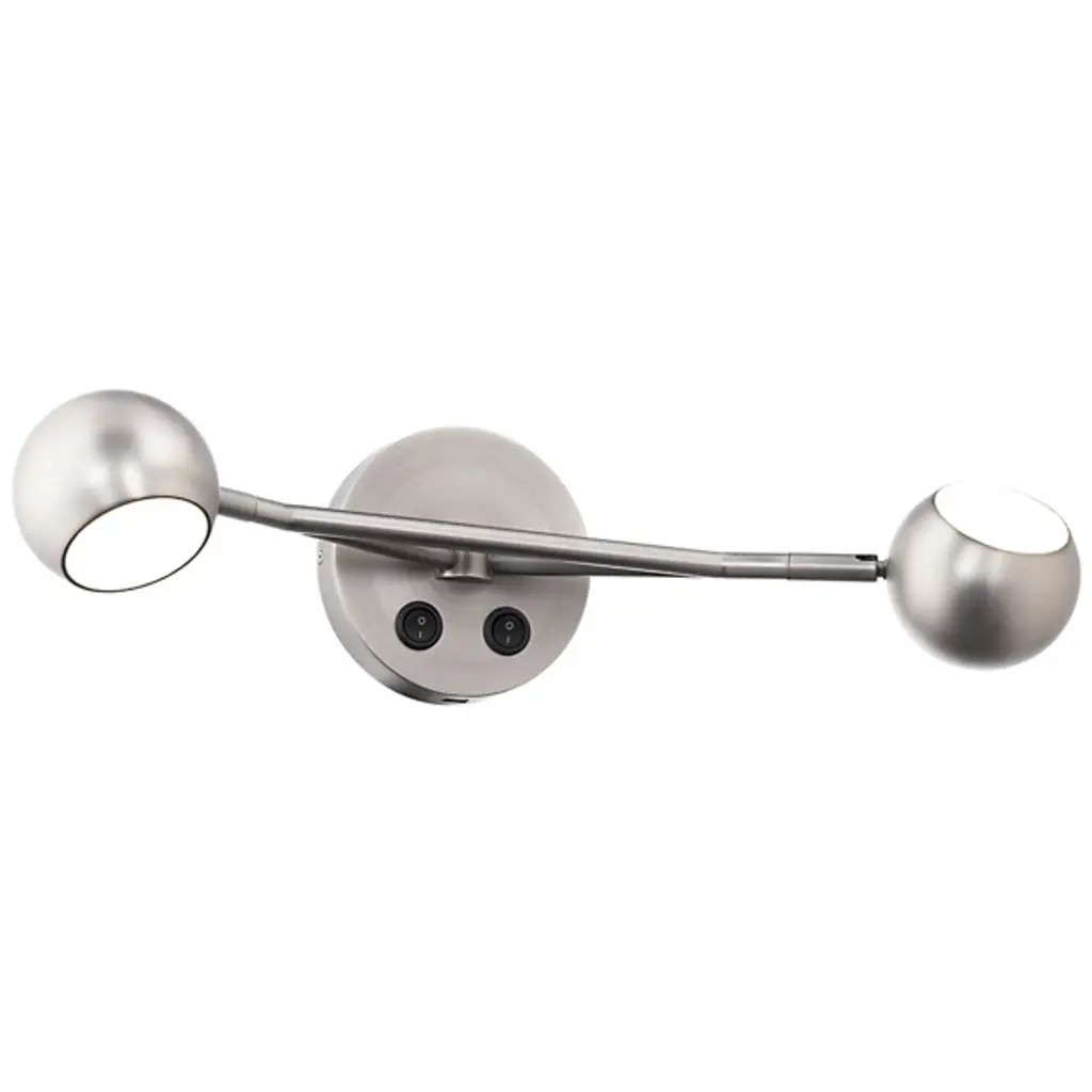 A marvelously flexible mix of modern design with cutting-edge functionality. The Duplex 2-Light LED Wall Sconce from dweLED starts simply with a circular wall mount with two rocker switches, extending slender arms to LED lamping set within pivoting, spherical shades. The lamping can be oriented for task use and reading or offset for a focused wall wash that provides an expressive, ambient warmth.