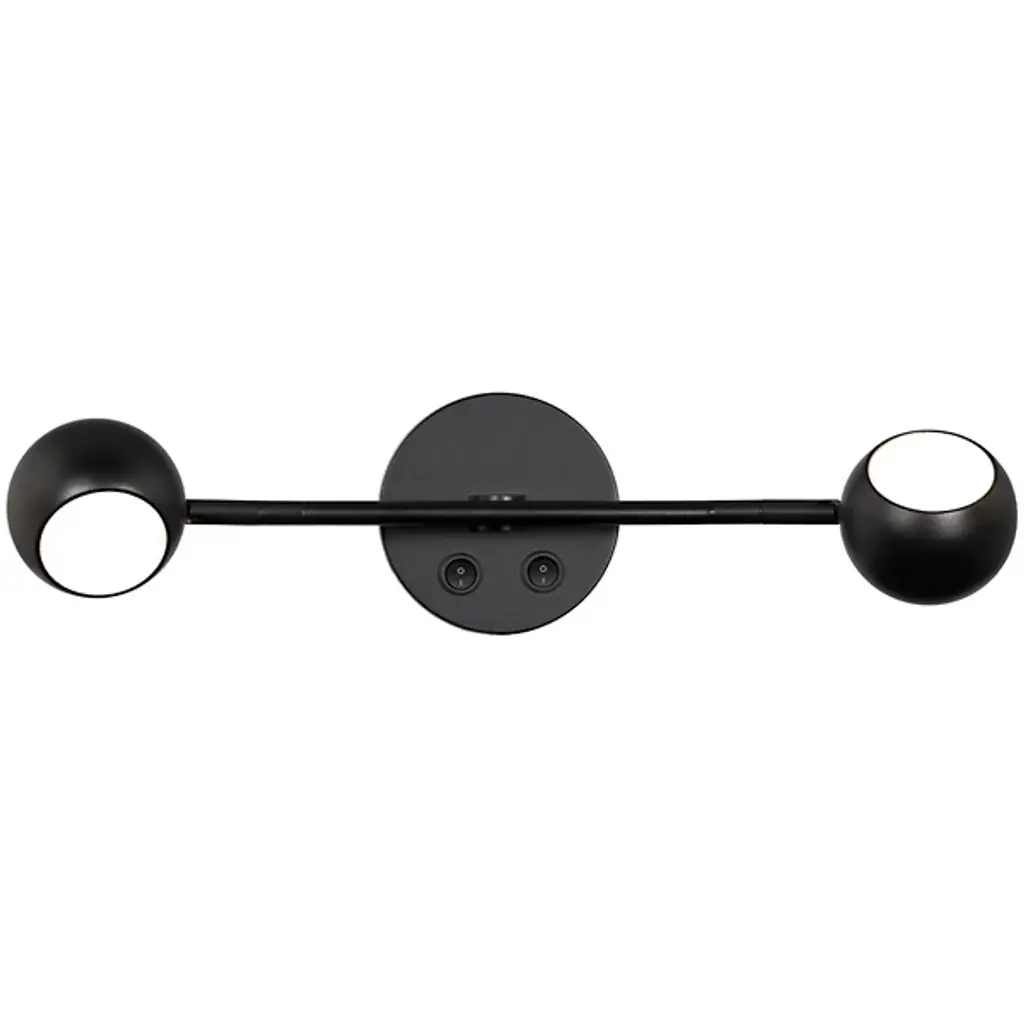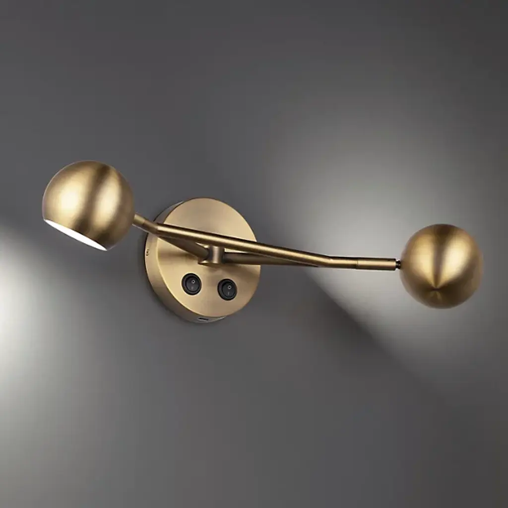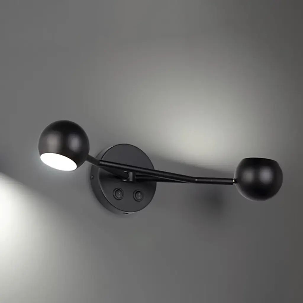 A marvelously flexible mix of modern design with cutting-edge functionality. The Duplex 2-Light LED Wall Sconce from dweLED starts simply with a circular wall mount with two rocker switches, extending slender arms to LED lamping set within pivoting, spherical shades. The lamping can be oriented for task use and reading or offset for a focused wall wash that provides an expressive, ambient warmth.