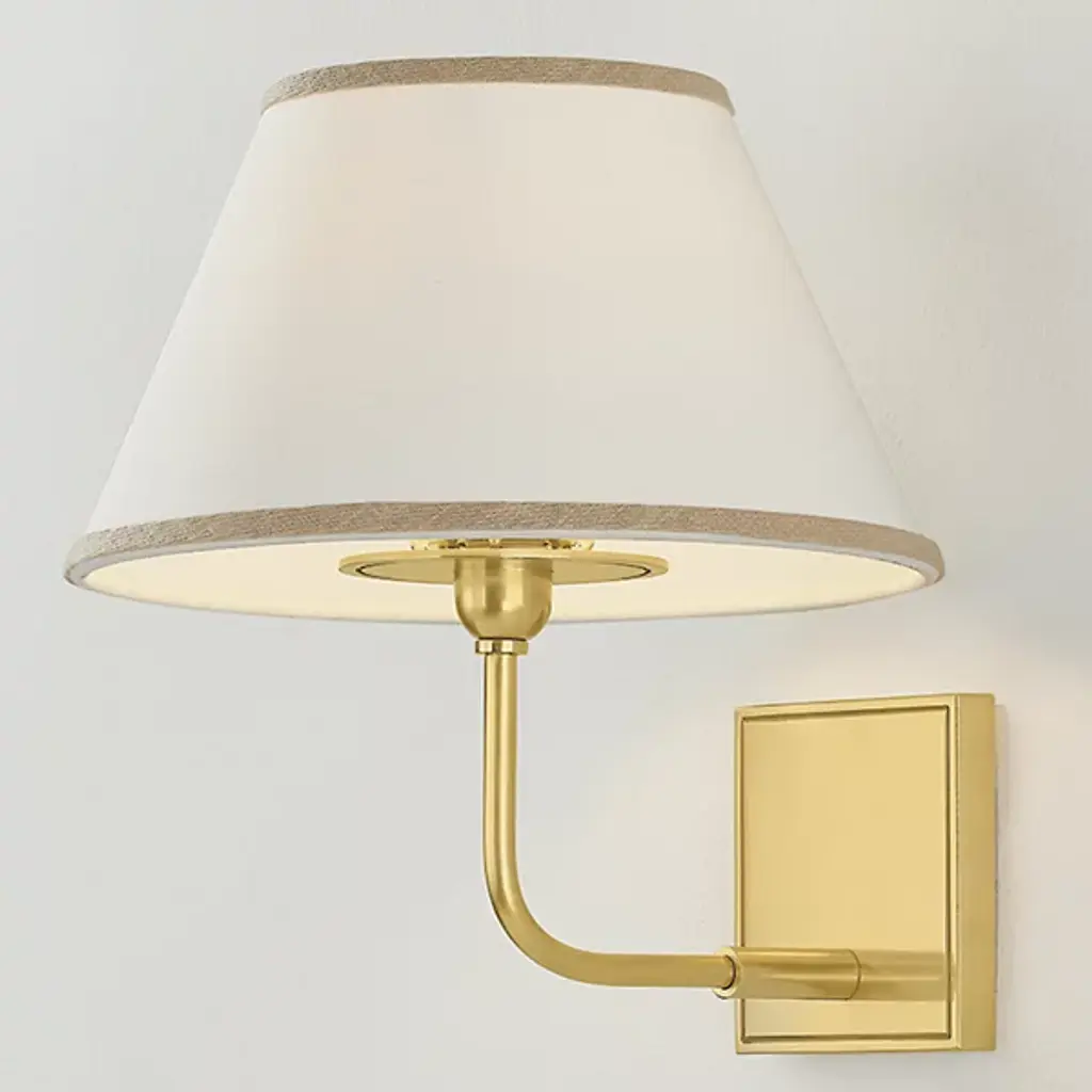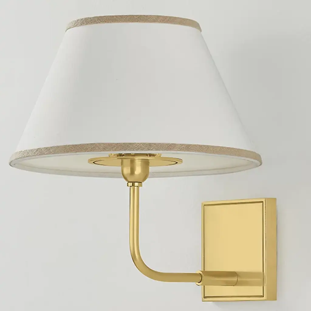 The Durland Wall Sconce by Hudson Valley Lighting brings a light, graceful presence to your space with its blend of vintage charm and modern ease. Its oversized white linen shades, arranged at varying heights, evoke the soft movement of sails in the breeze. Subtle ivory trim adds a touch of texture, while the Aged Brass frame and gently rounded angles create a warm, welcoming glow, perfect for adding softness and style to any room.