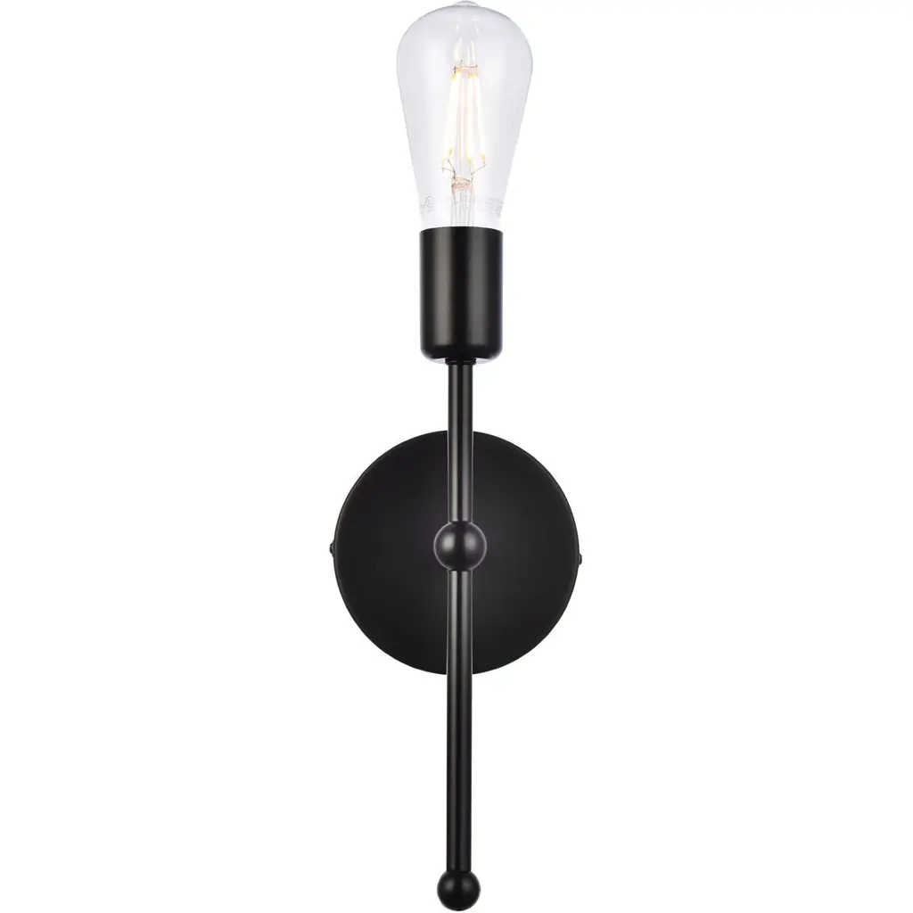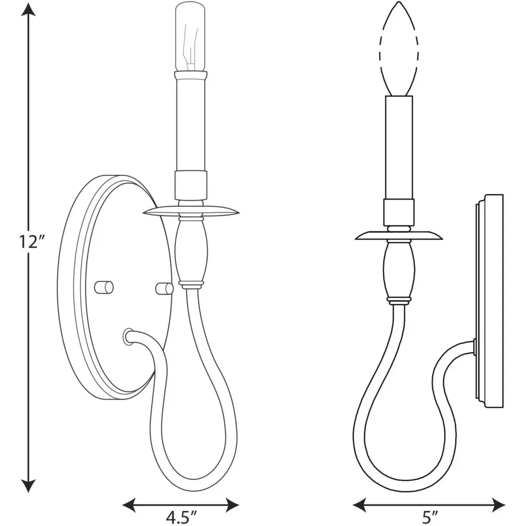 This versatile wall bracket from the Durrell Collection will easily find a home in a variety of settings in need of generous illumination. A light base reminiscent of a vintage candlestick is coated in a beautiful black finish. Beneath the light base, a decorative wooden piece coated in a cerused black finish tops a long, curving metal arm. The arm attaches to a round black backplate with a faux-painted wooden center for a mixed-elements aesthetic.