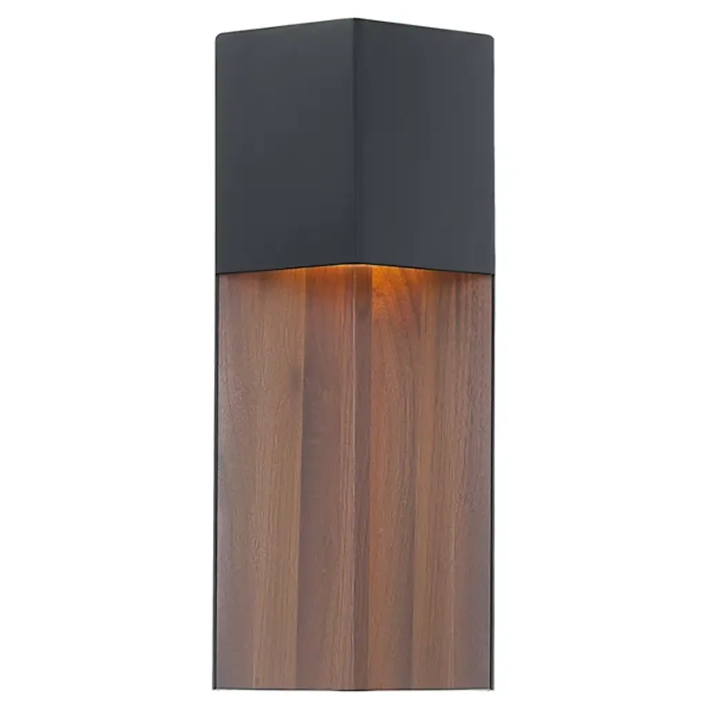 The Dusk Outdoor LED Wall Sconce from Modern Forms pairs an angular aesthetic with flawless functionality. Elegantly angled and ADA-compliant, it plays well with contemporary or minimalist design and pairs a dark walnut finish set inside a matte metal shade, setting wet-listed and driverless LED lamping inside an outward-canted shade. The light passes out through a glass diffuser, enlivening the wood with warm tones and spilling out a mix of wall wash and downlight, able to make a memorable addition to outside walls.