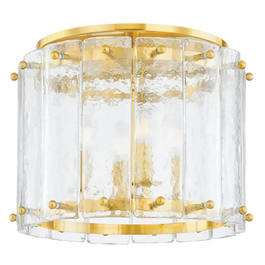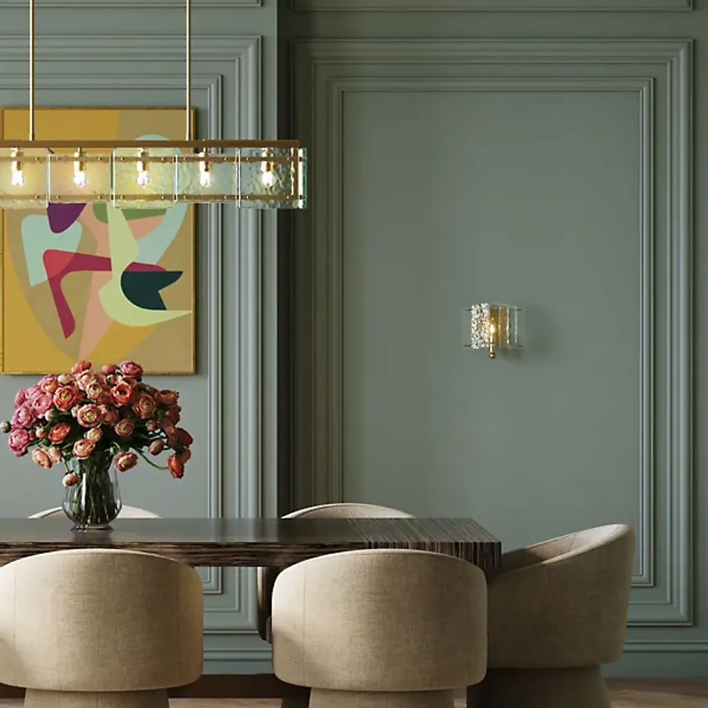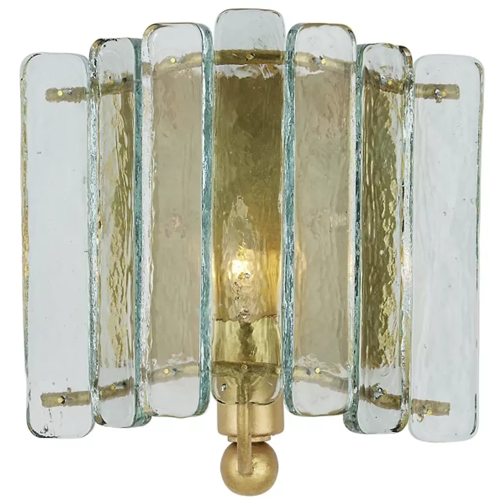 The Duvernell Wall Sconce from Currey & Company uses recycled glass panes to create fluid motion in lighting. Thick glass segments flow along the exterior, while wrought iron provides architectural support. The design plays with light as it passes through the varied textures of the glass panels. Each handcrafted piece develops its own character through the natural variations in recycled glass. The metalwork underlying the glass adds subtle definition to the overall composition. This sconce shows how sustainable materials can be transformed into artistic lighting.