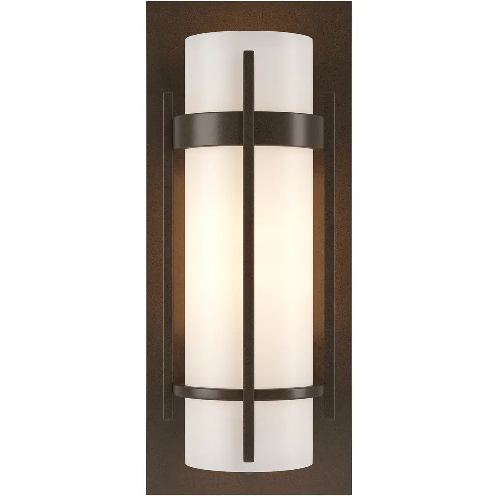 This outdoor wall light offers up a classy contemporary style for your home. It features an etched opal glass shade that gently diffuses the lighting provided by the energy-efficient LED module within. A dark bronze finish provides a handsome accent. This versatile fixture is ADA-compliant, and can be installed vertically or horizontally.