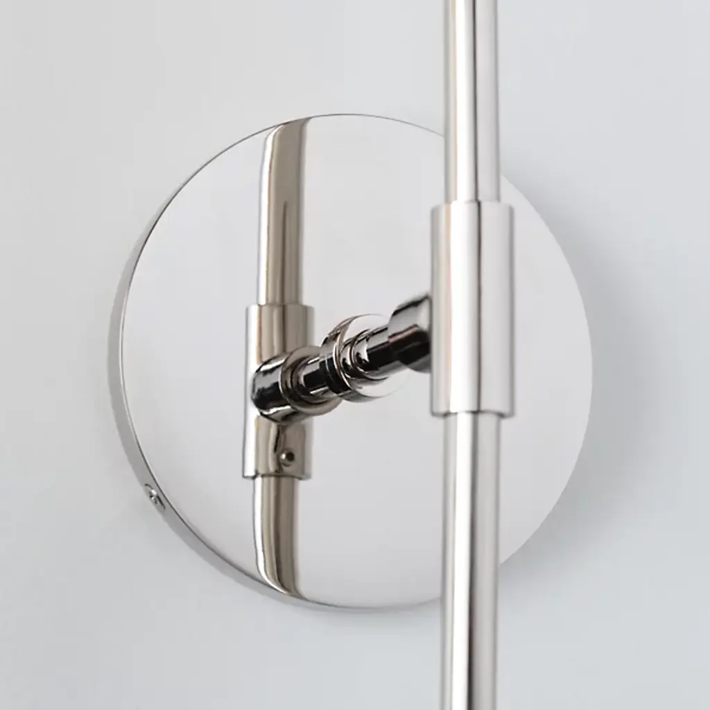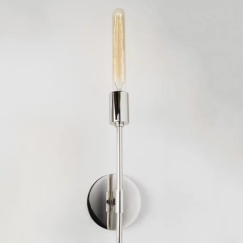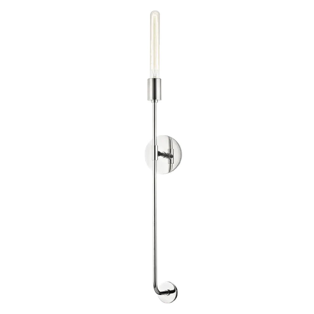 The creative design of the Mitzi Dylan Wall Sconce enables you to cast excellent ambient lighting through any room in the house. A slender incandescent bulb crowns a long Steel frame that connects to the wall through two vertically aligned points. Every detail of the body is simple but purposeful, giving this contemporary piece a detailed and balanced look.