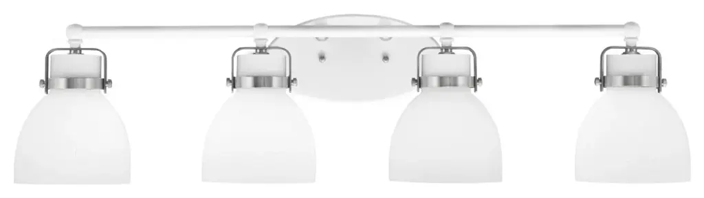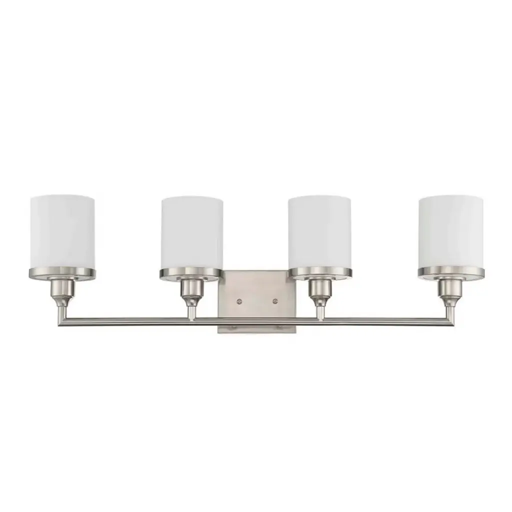 Easton 4 Light Bath Bar, White & Brushed Nickel, 4.5" Square White Muslin