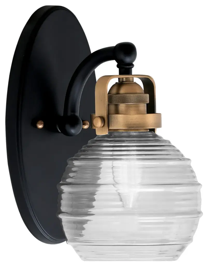 Easton Wall Sconce In Matte Black & Brass Finish, 4.5" Square White Muslin Glass
