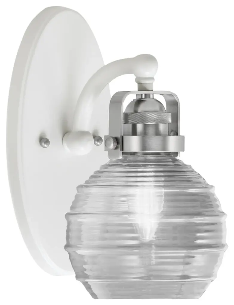 Easton Wall Sconce In White & Brushed Nickel Finish, 5" Clear Bubble Glass