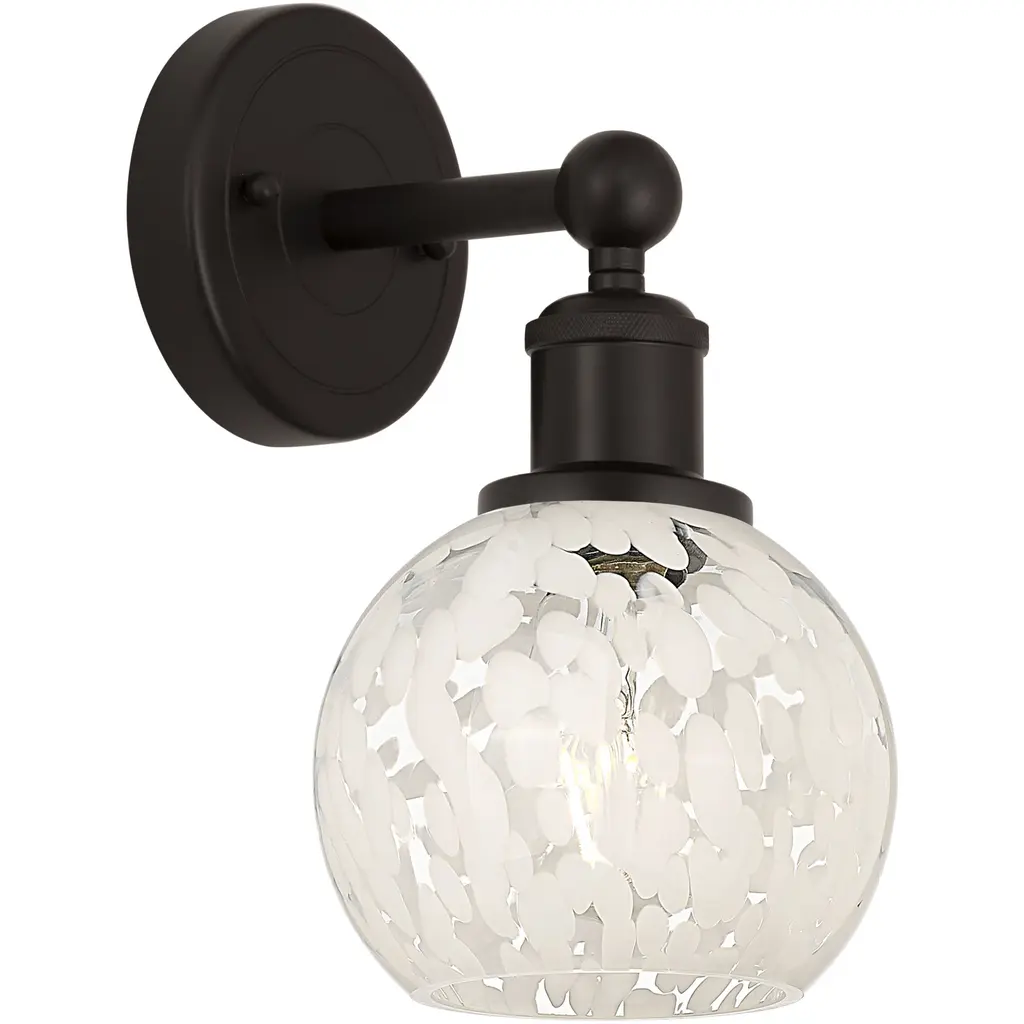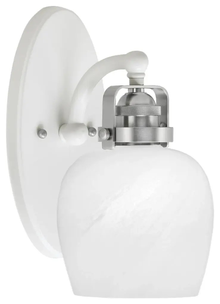 Easton Wall Sconce In White & Brushed Nickel Finish, 6" Onyx Swirl Glass