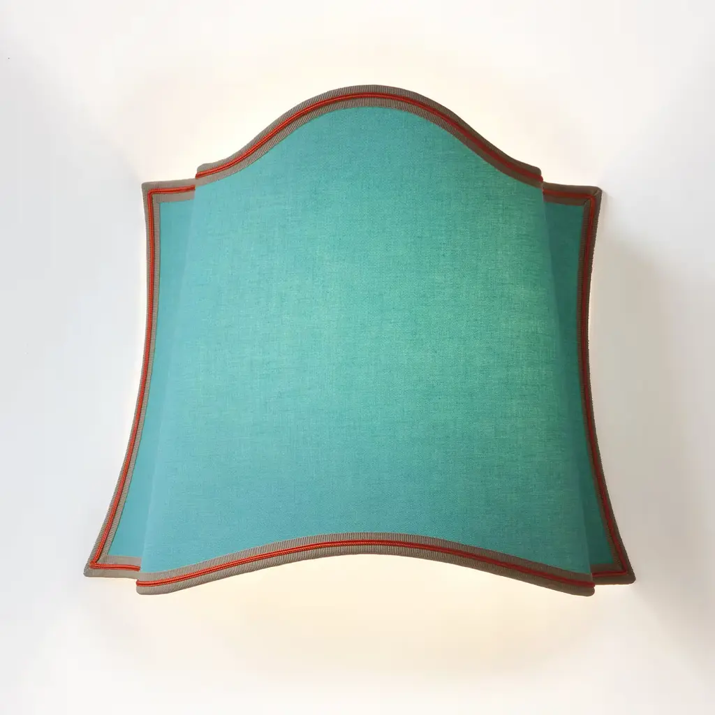 The Easy Wall lamp series reinterprets classic sconces with a contemporary touch, featuring pastel colors and contrasting trimmings. Each lamp comes with its bulb holder and a burgundy fabric cable. The lampshade is made of cotton with contrasting trimmings. Each lamp has 1x E27 or E26 bulb (not included) and a bordeaux silk-like braided cable. It has a switch on the cable, and it is not dimmable.