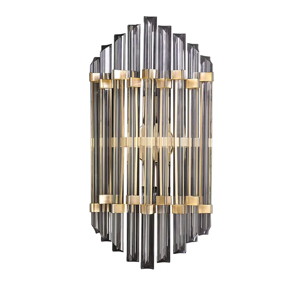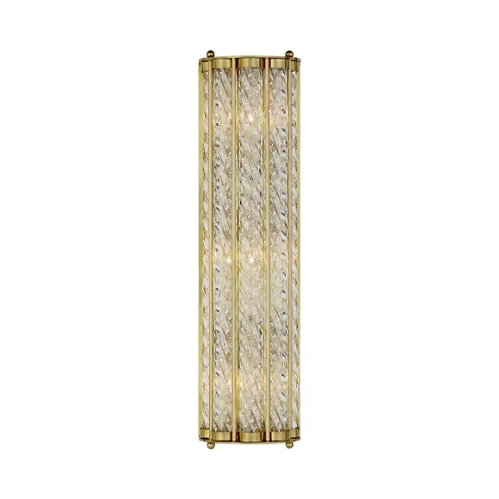 This sconce dresses the room in decadent elegance with its antiqued brass nickel frame and spiraling glass columns. Hardwired.