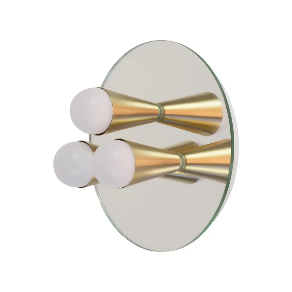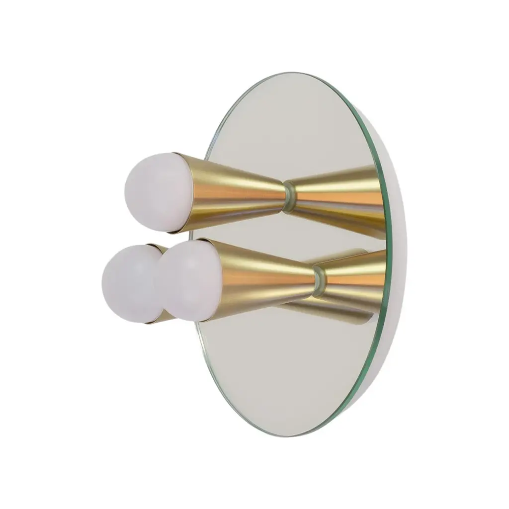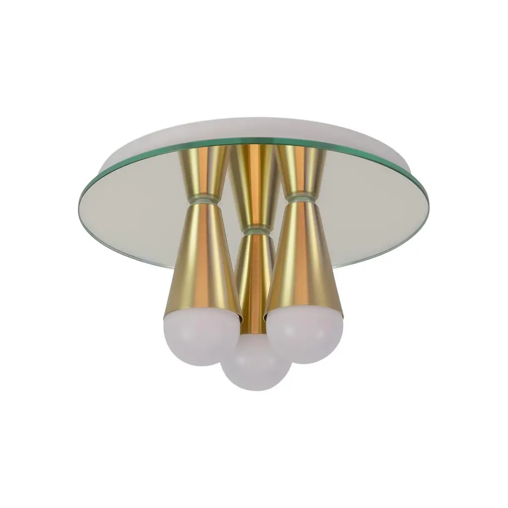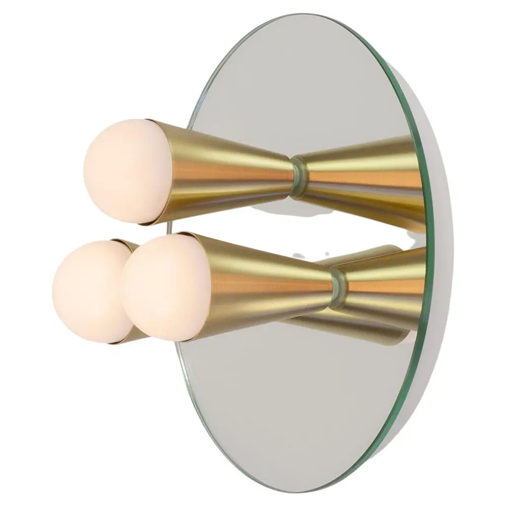 Simple, elegant and playful, the Echo Series is a line of surface-mount fixtures that can be used on a wall or ceiling. White or brass cones mount to mirrored glass to perfectly reflect each bulb, giving the illusion of lights floating in space.Canopy: White side-mount canopy included Lamping: Three E12 (candelabra) socketsVoltage: 110v Bulb Type: Requires three G16 1/2 bulb, bulbs not included Output: Bulbs available from 15-60 watts Dimming: Fully dimmableUL Listed upon Request.